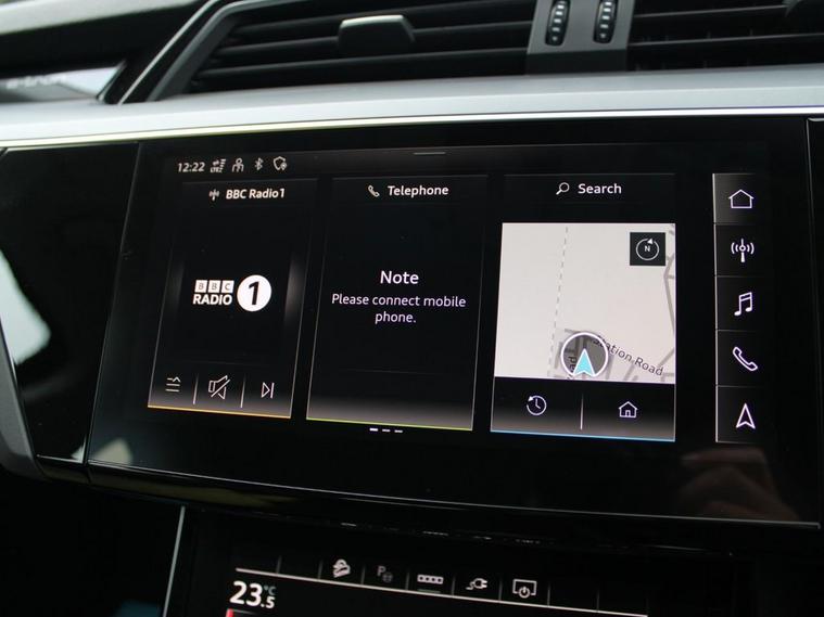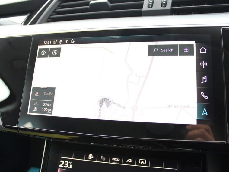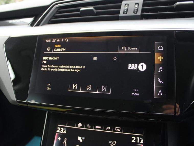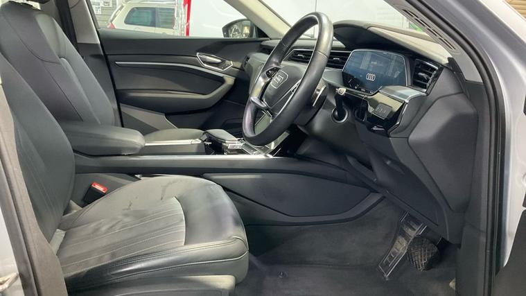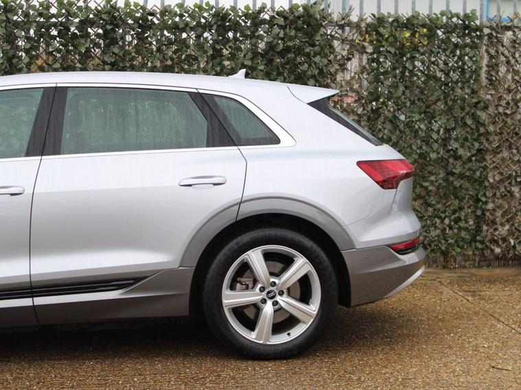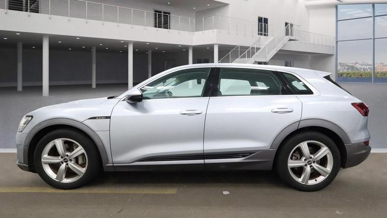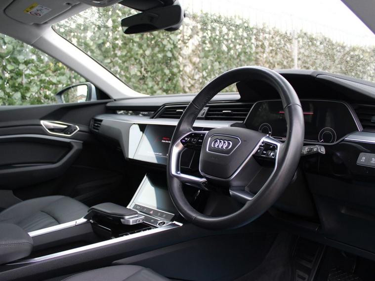 **96.9% BATTERY HEALTH** This 2021 Audi e-tron Technik boasts exceptionally low mileage for its age, having covered just 13, 209 miles with only one owner. This electric, four wheel drive SUV offers a battery total capacity of 71 kWh, providing a maximum range of 194 miles when new. The Technik trim level ensures a comfortable and convenient driving experience, featuring electrically adjustable front seats with a memory function for the driver, dual zone automatic air conditioning, and heated front seats. Further enhancing its appeal, this Audi e-tron is equipped with LED headlights and a Parking System Plus with 360 degree sensors, making manoeuvring easier. Charging is efficient, with a full charge at home on a 7kW charger taking approximately 9 hours and 10 minutes, while rapid public charging can achieve 80% capacity in just 34 minutes. These features, combined with its advanced electric drivetrain and premium Audi refinement, position this e-tron as a superior choice for those seeking an electric SUV.