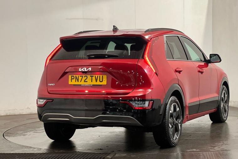 With only one owner and exceptionally low mileage for its age, this 2022 Kia Niro 4 is a standout electric vehicle. This 68 kWh electric model boasts a maximum range of 285 miles when new, offering ample capability for your journeys. It comes equipped with dual LED headlights for excellent visibility, automatic headlight control, and a heated steering wheel for added comfort. Inside, youll appreciate the convenience of Android Auto and Apple CarPlay with voice control, allowing seamless integration with your smartphone, and a drivers memory seat for personalised comfort. The generous boot space provides practicality for all your needs, from weekly shopping to weekend getaways. This Niro 4 offers a full charge at home in approximately 9 hours and 25 minutes using a 7kW charger, and can reach 80% charge in just 43 minutes at a public charging station, highlighting its efficiency and convenience. With a clear vehicle history check and a mere 13786 miles on the clock, this Kia Niro represents excellent value and a smart choice for electric motoring.
