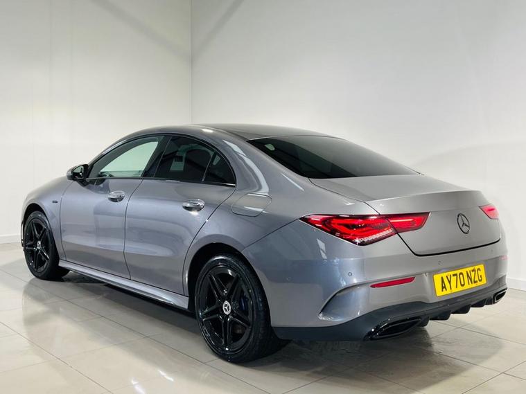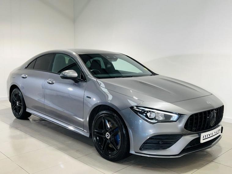 A stunning example of the Mercedes-Benz CLA 250e AMG Line (Premium), finished in Mountain Grey Metallic with a premium Black Artico leather and Dinamica interior. Combining sleek coupe styling with the latest plug-in hybrid technology, this CLA delivers sporty performance, impressive efficiency, and low running costs ideal for both business and personal use Powered by a refined 1.3-litre petrol engine paired with a 15.6 kWh electric motor, it produces a combined 218 PS through the 8G-DCT automatic transmission, offering instant response and silent electric running for up to 40 miles of EV range. Fully Euro 6 compliant and ULEZ friendly, this is modern Mercedes-Benz engineering at its best. Key Features Plug-in Hybrid system: 1.3-litre petrol + electric motor (218 PS combined) 8G-DCT automatic transmission with paddle shift Up to 40 miles electric range (WLTP) AMG Line styling with sport suspension and aerodynamic body kit 18 AMG twin-spoke alloy wheels MBUX infotainment system with voice control, navigation and Bluetooth Digital instrument cluster with hybrid information display Reversing camera with front and rear parking sensors LED High Performance headlights Dual-zone automatic climate control Heated front sports seats Keyless start and cruise control Optional Equipment Mountain Grey Metallic paint Premium Package upgraded sound system, ambient interior lighting, wireless charging and keyless entry Privacy glass Electric folding mirrors Front and rear carpet mats Additional Information 71, 000 miles covered ULEZ compliant and low road tax Combined economy: up to 200+ mpg (depending on charge and driving conditions) 062 mph in just 6.6 seconds Full Mercedes-Benz service history Charge time: approx. 1 hr 45 min (7.4 kW wallbox) Sleek, efficient and exceptionally well-equipped plug-in hybrid coupe