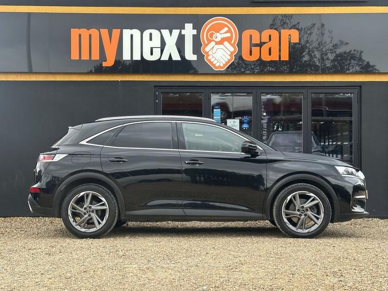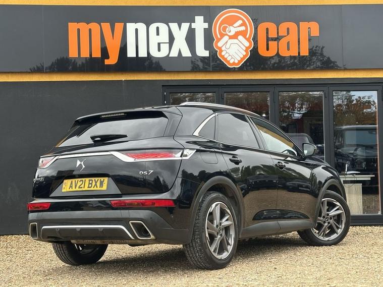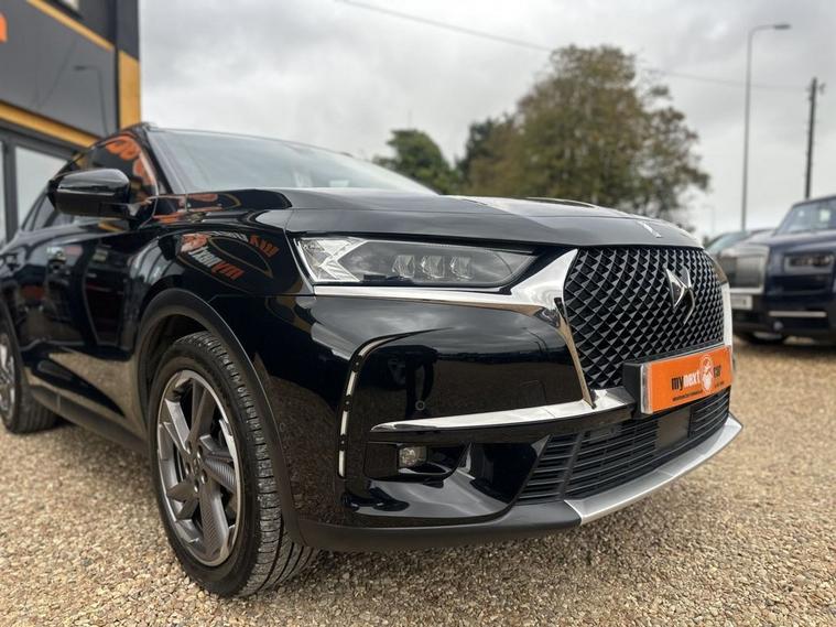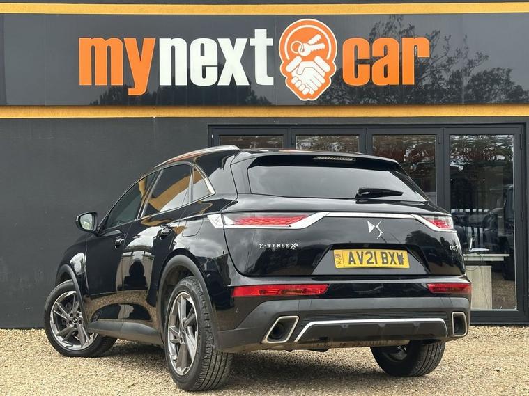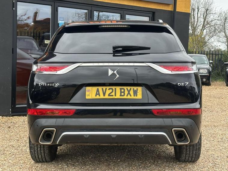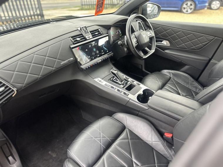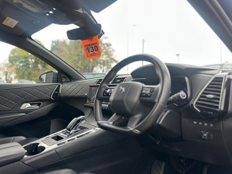 Auto comfort pack - DS 7, Electric seats pack - DS7, Modularity boot pack - DS7, Polar white centre caps with DS logo, Automatic front doors and boot locking, Immobiliser, Perimetric and volumetric anti theft alarm, Remote central locking + deadlocks, Stop/ Start function, 2 USB sockets in rear, Bluetooth hands free and media streaming, DAB Digital radio, 3x3 point rear seatbelts, ABS, Active city braking, Child safety lock, Driver, front passenger, front lateral and curtain airbags, Electric parking brake, Emergency braking system, ESP, Height adjustable front seatbelts with pretensioners and front and rear load limiter, Hill start assist, Rear curtain airbags, Safety kit including first aid kit, yellow vest and Warning triangle, Trailer stability control, Tyre pressure monitoring system, Acoustic, tinted and heated windscreen, Automatic headlights, Automatic lighting at car unlocking, Body colour door handles with chrome trim, Body coloured bumpers, Chrome roof rails, Chrome window surround, Chromed DS wings, Dark tinted rear windows, Defrosting door mirrors, Door mirrors including reverse gear angle memorisation, DS 3D LED rear lights, DS active LED Vision headlights, DS badge on bonnet with chrome inserts, E-tense badge on bonnet, E-tense monogram on the rear tailgate, Electric folding door mirrors with DS LED spotlights, Follow me home manual lighting, Frameless electrochromic interior rear view mirror, Front and rear door entry sill with DS design, Gloss black exterior door mirrors, Gloss black front grille, High beam assist, Laminated front/rear screens, LED daytime running lights, LED front fog lights with static cornering light function, 60/40 split folding rear seat backrest, Aluminium sports pedals, B.R.M R180 timepiece, Chrome controls, Cloth sun visors with LED courtesy mirror and ticket holder, DS inspiration badged front/rear carpet mats, E - tense leather gear knob, Electric folding rear headrests, Electric front cushion extensions, Electric lumbar adjustment, Flocked glasses storage on driver side, Front and rear door pockets, Front central armrest with storage, Front closed storage with USB connection point, Front double cupholders, Front head restraints, Front seat and rear pockets, Gear shift indicator, Heated front seats, Height and depth adjustable steering wheel, Massage function for front seats, Open storage on driver side, Premium leather steering wheel, Rear central armrest with storage, Rear double cupholders,