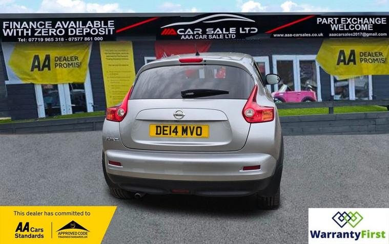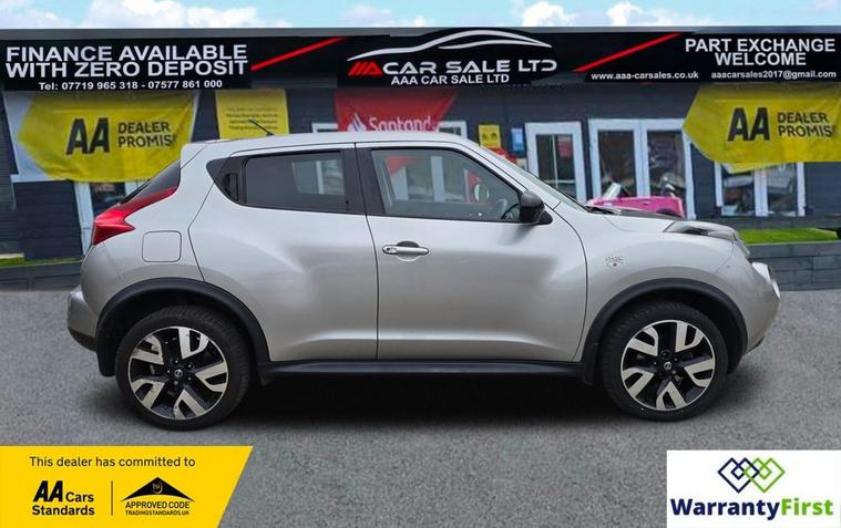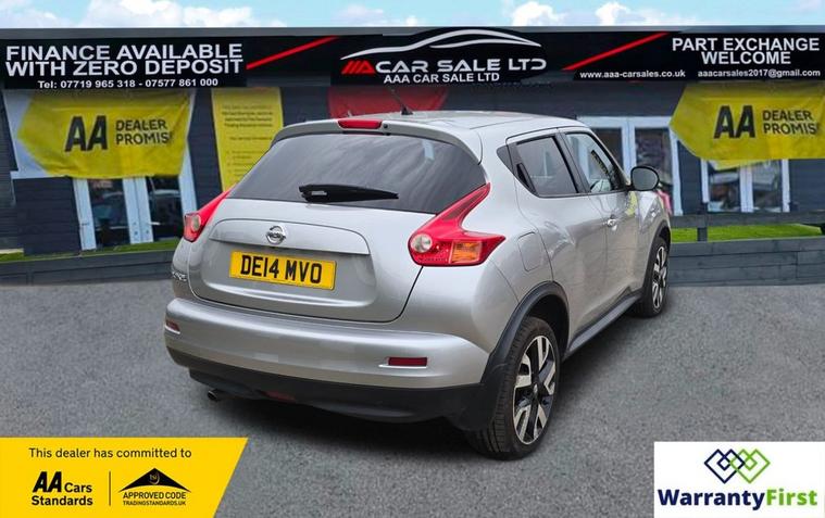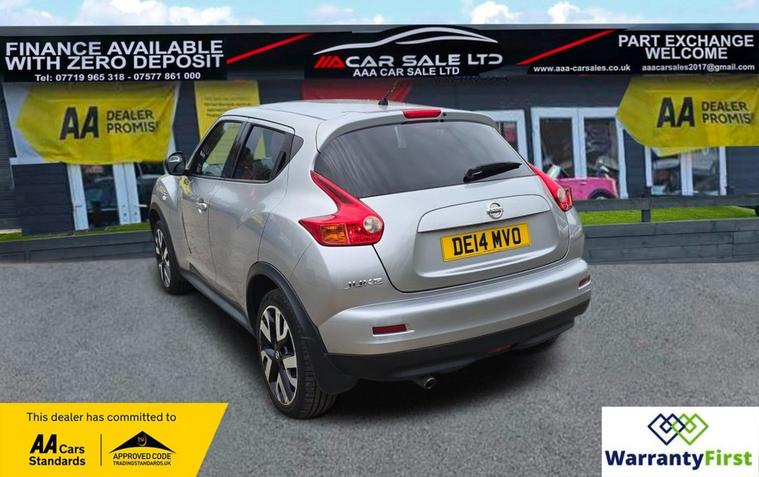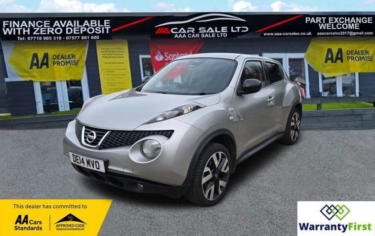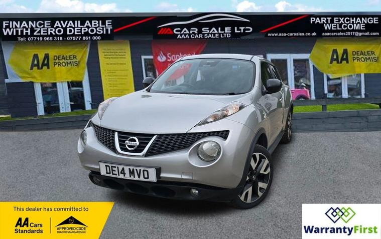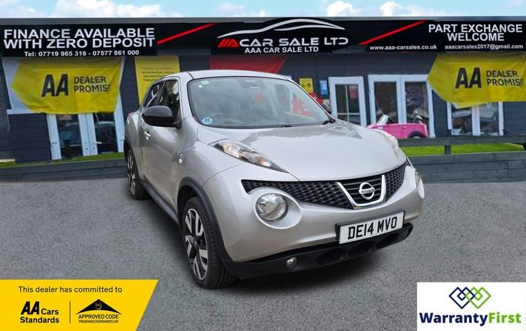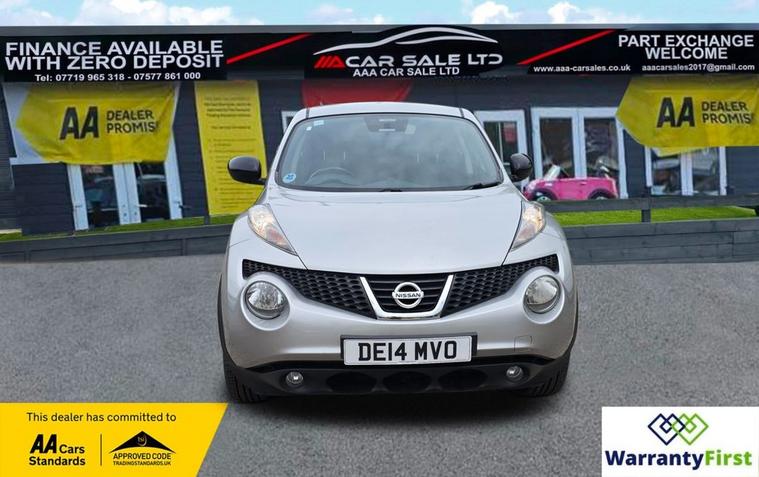 **AAA CAR SALES DARLINGTON LTD HAVE THE PLEASURE TO PRESENT NISSAN JUKE 1.6 n-tec SUV 5dr Petrol Manual Euro 5 (17in Alloy) (117 ps) IN BLADE SILVER PAINT WORK, FULL NISSAN SERVICE HISTORY SERVICED AT 7K, 14K, 18K, 24K, 31K, 39K, 46K, 51K, 57K, 66K, 72K AND A SERVICE BY US AT 74K, ALL OUR CARS GO THROUGH 72 POINT INSPECTION, ALL OF OUR CARS COME WITH 12 MONTHS AA BREAKDOWN COVER, FRESH MOT WITHOUT ADVISORIES, INTERIM SERVICE, HPI CHECKED VIA EXPERIAN, 3 MONTHS WARRANTY WITH THE OPTION TO UPGRADE ***AUTOTRADER CUSTOMER SERVICE AWARD 2019, 2020, 2021, 2022, 2023 and 2024 YEAR ON YEAR***, WE ARE OPEN 7 DAYS A WEEK FOR YOUR CONVIENIENCE, CALL 01325950841 OR EMAIL US AT hello dealer's website or visit our website dealer's website , Service history, Clean bodywork, Cloth interior - Clean Condition, Tyre condition good, YOU CAN BUY WITH FULL CONFIDENCE FROM AAA CARS CHECK OUR AUTOTRADER REVIEWS FOR FULL PEACE OF MIND,