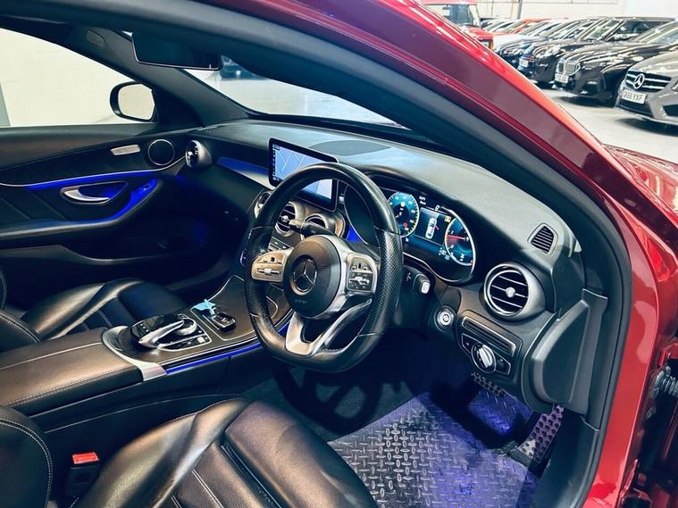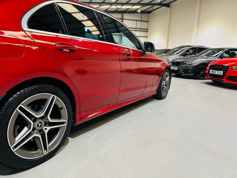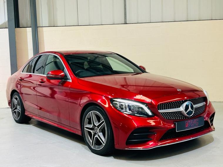 Mercedes-Benz C-Class 2.0 C300d AMG Line Edition (Premium) Saloon 4dr Diesel G-Tronic+ Euro 6 (s/s) (245 ps) Registration: KW69JPF | 54, 000 miles | Finished in Hyacinth Red Metallic with Black Artico Leather A stunning example of the Mercedes-Benz C300d AMG Line Edition, finished in the striking Hyacinth Red Metallic with contrasting Black Artico leather interior. Combining elegant design with powerful performance, this premium saloon delivers the perfect balance of refinement, efficiency and sportiness. Powered by the 2.0-litre turbocharged diesel engine producing 245 PS and paired with the smooth 9G-Tronic automatic transmission, the C300d offers strong performance and excellent long-distance economy. Fully Euro 6 compliant and ULEZ friendly, this C-Class blends effortless pace with executive comfort. The AMG Line Edition (Premium) specification adds a host of luxury features and sporty styling enhancements, making it one of the most desirable versions in the range. Key Features 2.0-litre C300d diesel engine producing 245 PS 9G-Tronic automatic transmission with paddle shift AMG Line Edition styling and sports suspension Euro 6 ULEZ compliant 18 AMG alloy wheels with diamond-cut finish LED Intelligent Light System Premium Package including upgraded audio, keyless entry/start and ambient lighting Reversing camera and front/rear parking sensors Dual-zone climate control and cruise control Heated front seats and electrically adjustable drivers seat Black Artico leather/Alcantara upholstery with contrast stitching Optional Equipment Hyacinth Red Metallic paint finish (Premium option) Privacy glass Split-folding rear seats Front and rear carpet mats Chrome exterior trim package Additional Information 54, 000 miles covered Combined economy around 50+ mpg (depending on driving conditions) 0 to 62 mph in approximately 5.7 seconds Road tax: £195 per year Elegant, powerful and efficient premium saloon