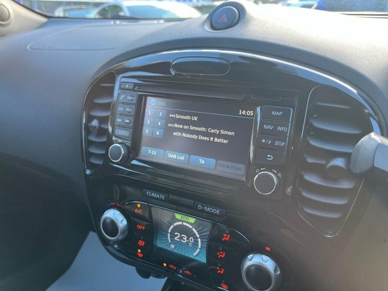 Boasting a full dealership service history and a clear vehicle history check, this 2018 Nissan Juke DIG-T Tekna presents an excellent ownership proposition. This Euro 6 compliant 1.2 litre petrol model has covered a low mileage of just 39, 863 miles, with its last service completed on 2nd May 2025 at 33, 926 miles. You can drive away with confidence, as it comes with a 12 month MOT and a 6 month warranty. Inside, youll find the convenience of Intelligent Key with a push button start and keyless entry, alongside automatic climate control with a pollen filter and heated front seats for your comfort. The Tekna trim also includes automatic headlights that activate at dusk and a Blind Spot Warning system for added safety. This Nissan Juke stands out with its impressive fuel economy, achieving a highlight of 50 miles per gallon, which is better than many similar vehicles. Its low CO2 emissions and low insurance group further contribute to its cost effectiveness, making it an economical choice for everyday driving.