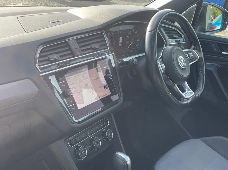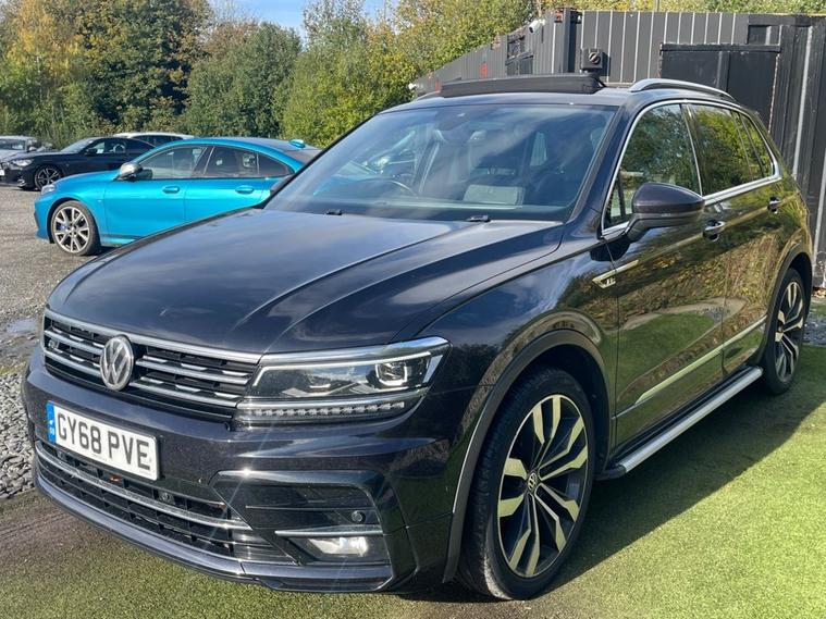 VOLKSWAGEN TIGUAN 2.0 TDI R-LINE SUV DSG 4 MOTION IN BLACK, GENUINE 63019 MILES WITH A COMPREHENSIVE SERVICE RECORD, 2 X KEYS, COLOUR CODED EXTERIOR, POWER FOLD MIRRORS, 20 ALLOYS, LED DAYTIME RUNNING LIGHTS, XENON HEADLIGHTS, FRONT AND REAR PARK SENSORS, TWIN EXHAUST, ELECTRIC TAILGATE, ELECTRIC MIRRORS/WINDOWS, AUTO LIGHTS/WIPERS, FLAT BOTTOM MULTI FUNCTION STEERING WHEEL, ADAPTIVE CRUISE CONTROL, REMOTE CONTROL CENTRAL LOCKING, SATELLITE NAVIGATION , BLUE TOOTH, DAB DIGITAL RADIO, APPLE CAR PLAY, USB CONNECTIVITY, DUAL CLIMATE CONTROL WITH A/C, MULTIPLE DRIVE MODES INCLUDING SPORT/SNOW, SLIDING PANROOF, START/STOP, AUTO HOLD, REVERSE CAMERA, HALF ALCANTARA HEATED SEATS AND ISOFIX.