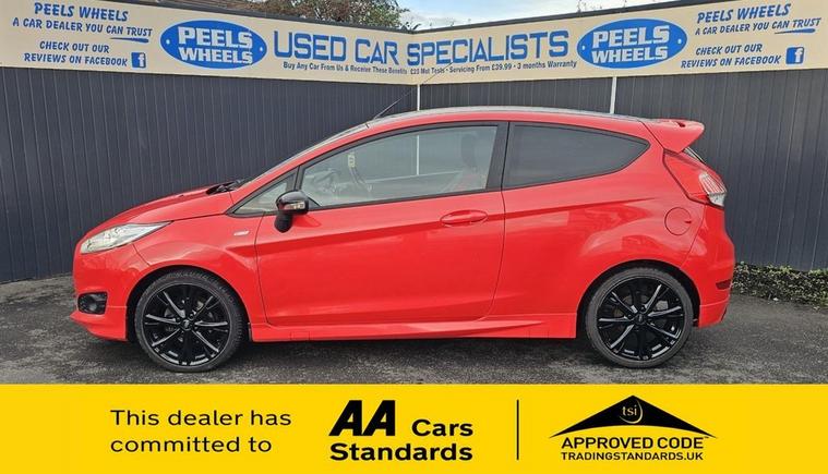 2016 (66) Ford Fiesta * Gleaming Red, 1.0T EcoBoost ST-Line Hatchback, 3 Door, Petrol, 5 Speed Manual Euro 6 (s/s) (140 ps Edition) 3 Months FREE Warranty, Part Exchange Welcome, Come And View, 72, 000 Miles, Heated Front And Rear Screens, Outstanding Example, Just Been Serviced, New Cambelt/Wet belt Recently Fitted, 2x keys, £20 Per Year Road Tax, Great Spec, Satnav, CD Player, New Wheel Refurbishment, AUX/USB Points, Electric Windows And Mirrors, Complete Full Service History From New, Perfect First / Family Car, Great Boot Space, Finance Available, See Our Links Below To Apply, Credit And Debit Cards All Welcome, ** WE ALSO OFFER DELIVERY ALL OVER THE U.K ON ALL CARS ** CHECK OUT ALL OUR REVIEWS ON FACEBOOK AND GOOGLE, SEARCH:- PEELS WHEELS MORECAMBE READY TO DRIVE AWAY SAME DAY, CHECK OUT OUR REVIEWS ONLINE, GREAT PRICES OFFERED ON PART EXCHANGE, Apply Here For Finance:- https:/ dealer's website OR HERE https:/ dealer's website To view our full stock list please visit our website MORE CARS ARE ON THERE. dealer's website Call us today - 01524804618, Come see us - PEELS WHEELS, MORECAMBE, LA33AY