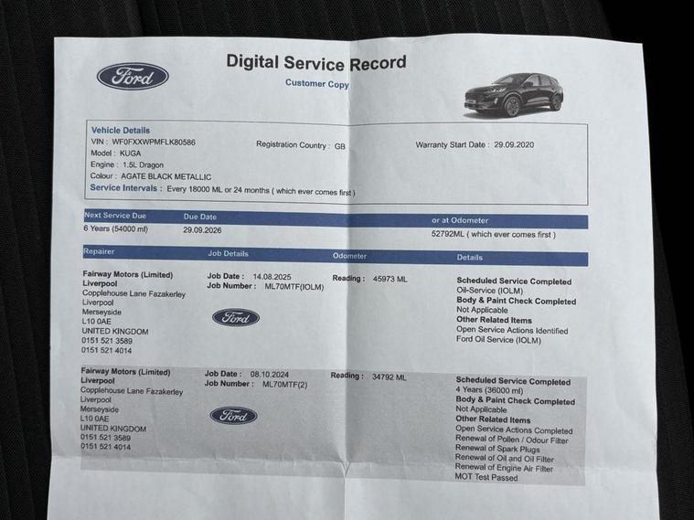 This 2020 Ford Kuga T Titanium is a superb example, having had only one owner since new. It boasts a responsive 1.5 litre petrol engine and meets Euro 6 emissions standards. Inside, youll find the impressive Bang and Olufsen Premium Audio System for an exceptional listening experience, complemented by the Ford SYNC3 Navigation System which seamlessly integrates with Android Auto and Apple CarPlay, and offers Bluetooth connectivity. The convenience of automatic headlights with auto high low beam and full LED headlamps ensures optimal visibility, while front and rear parking sensors make manoeuvring effortless. This particular Kuga Titanium stands out with its low insurance group, indicating it could be more economical to own and run compared to similar vehicles. The combination of advanced technology, premium sound, and practical driver aids, all presented in a well maintained, single owner vehicle, makes this Ford Kuga a compelling choice for those seeking a capable and feature rich SUV.