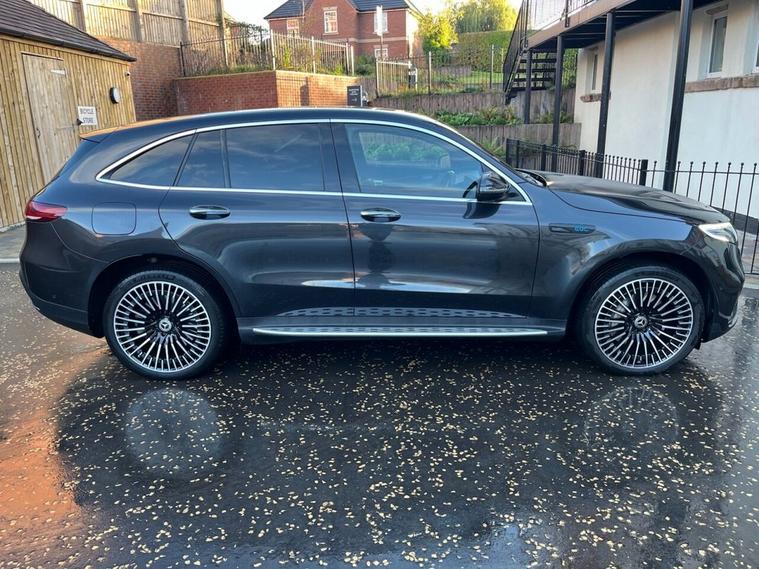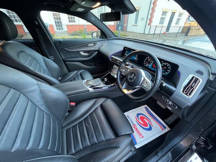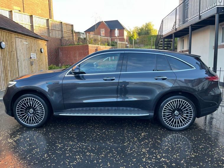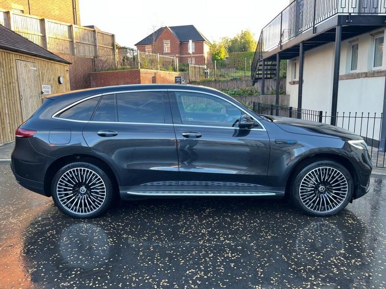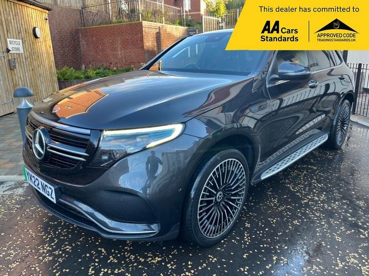 This 2022 Mercedes-Benz EQC 400 AMG Line (Premium) offers an exceptional blend of electric performance and luxury. As a fully electric, four wheel drive vehicle, it boasts a substantial 88 kWh battery providing a maximum range of 254 miles when new and comes with a detailed service history and a 12-month MOT. This impressive EQC 400 AMG Line (Premium) comes equipped with a suite of advanced features designed for convenience and safety, including wireless smartphone charging, a comprehensive parking package with front and rear sensors and a rear camera, blind spot assist, and the KEYLESS-GO comfort package for effortless entry. The striking MULTIBEAM LED headlights ensure excellent visibility in all conditions. Experience exhilarating acceleration with the EQC 400 AMG Line (Premium), capable of reaching 0-60mph in a swift 5.1 seconds, demonstrating its dynamic capabilities. Charging is convenient, with a full charge at home taking approximately 12 hours and 13 minutes using a 7kW charger, while rapid public charging can replenish the battery from empty to 80% in just 45 minutes. This model also features a large boot space, offering ample room for luggage or shopping, making it a practical choice for everyday use and longer journeys.