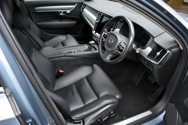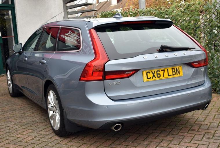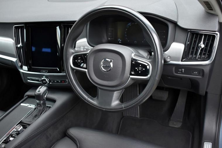 Mussel Blue metallic with Off-Black leather faced interior. Specification: Optionally fitted smartphone interface upgrade with Apple CarPlay/Android Auto and rear view camera in addition to Sensus navigation system, active bending LED headlights with high-beam assist, electric drivers seat with 2-position driver memory including door mirrors, power tailgate, heated front seats and heated steering wheel, heated windscreen, DAB radio, USB input, wireless audio streaming, electric folding door mirrors, rear park assist, multi-function steering wheel with adaptive cruise control, 18 10-spoke Turbine alloy wheels, 60/40 split-folding rear seats, auto-hold, lane assist, temporary spare wheel, dual-zone climate control and more. Only two owners from new with full Volvo main dealer service history - 7 records, serviced at 11, 888m, 19, 154m, 20, 925m, 25, 666m, 29, 152m, 33, 169m and lastly in August 2025 at 36, 376m. MOTd at point of sale in our on-site service centre. Original handbook pack and two remote keys. The perfect colour for a V90...