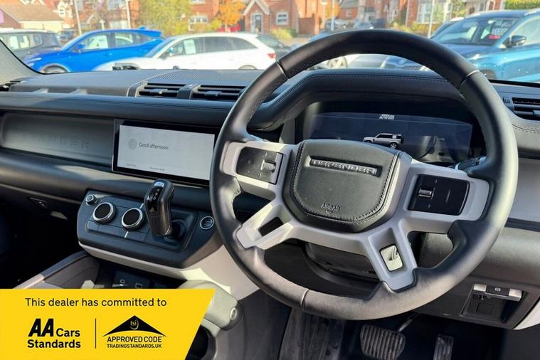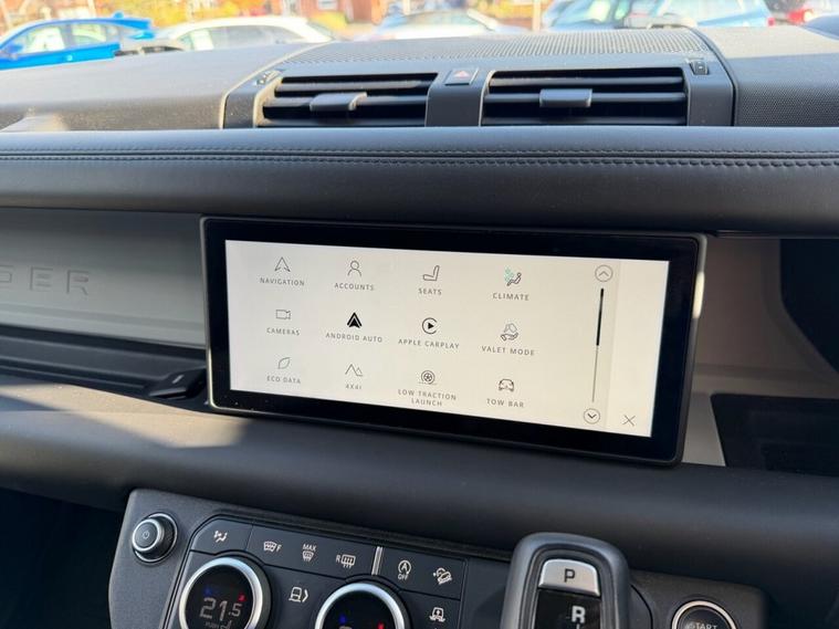 This 2021 Land Rover Defender 110 D300 HSE boasts a full dealership service history, with its last service completed on 2025-02-10 at 36863 miles, and has had only one owner. This impressive four wheel drive vehicle is powered by a 3.0L Diesel engine, meeting Euro 6 emission standards. It offers a substantial towing weight of 3500 kg and comes with a 3 month warranty for your peace of mind. Notable features include advanced Matrix LED Headlights with Signature DRL, a Head Up Display for convenient information access, and a Comfort and Convenience Pack complete with wireless phone charging. The Defender 110 D300 HSE excels with its dynamic performance, achieving 0-60mph in a swift 6.7 seconds, demonstrating its capability beyond typical vehicles in its class. The inclusion of an electrically deployable towbar and 2 Zone Automatic Climate Control further enhances its practicality and comfort, making it a well equipped and versatile choice for any adventure. ========= Specification: 20 Alloy Wheels in Satin Dark Grey Matrix LED Headlights with Signature DRLs 3D Surround Camera with Parking Assist Heated & Cooled Windsor Leather Seats with Memory Meridian Premium Sound System Head-Up Display (HUD) Pivi Pro 10 Touchscreen with Navigation & Online Pack Apple CarPlay & Android Auto Heated Windscreen & Steering Wheel Electronic Air Suspension with Terrain Response Adaptive Cruise Control with Traffic Sign Recognition Blind Spot Assist & Rear Cross Traffic Braking Keyless Entry with Push Button Start Electronic Deployable Towbar & Side-Hinged Tailgate Privacy Glass & Black Roof ========= Service History: 03/02/2023 - 20, 674 miles - Land Rover 10/02/2025 - 36, 863 miles - Land Rover =========