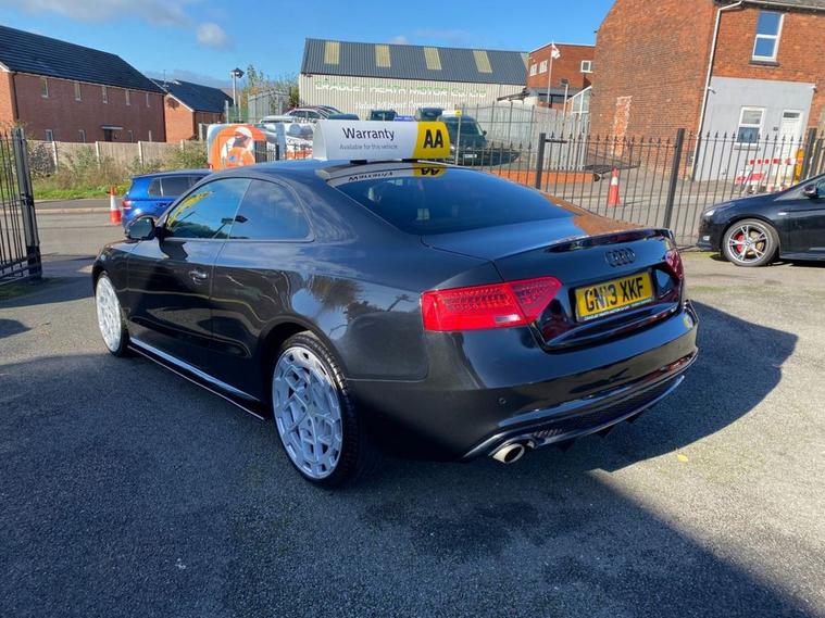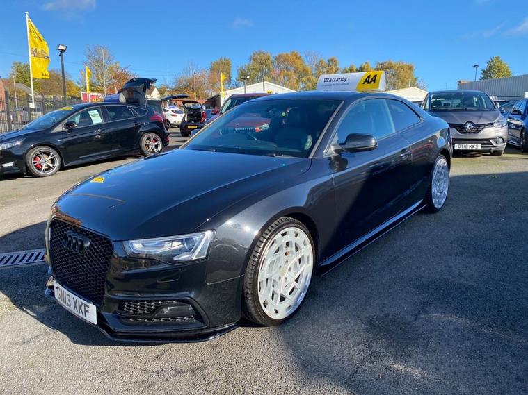 Discover this exceptional Audi A5 TFSI Black Edition from 2013, boasting remarkably low mileage for its age at just 65, 000 miles. This striking model, presented in the sought after Black Edition trim, is equipped with a powerful 2.0 litre petrol engine and Audis renowned four wheel drive system, ensuring a confident and engaging driving experience. Inside, youll find comfort and convenience with Deluxe 3-Zone Climate Control, including independent rear air conditioning controls for passenger compartment comfort. The Bi-Xenon Plus headlights provide excellent visibility, while the premium Bang and Olufsen sound system delivers an immersive audio experience. Parking is made easier with rear parking sensors and parking assistance. This Audi A5 TFSI Black Edition offers a compelling blend of performance and efficiency, achieving an impressive fuel economy of 42 miles per gallon. Its low CO2 emissions further highlight its efficiency compared to similar vehicles. The combination of its low mileage, desirable Black Edition specification, and advanced features makes this Audi A5 a standout choice for those seeking quality and refinement.