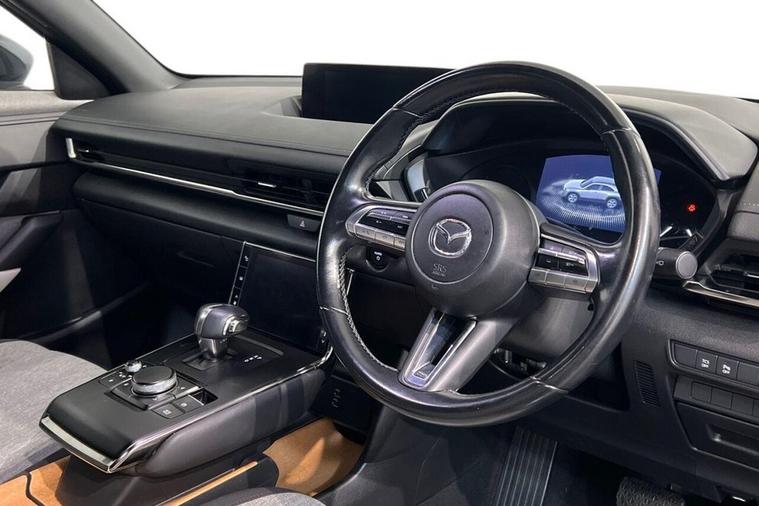 This 2021 Mazda MX-30 SE-L Lux is a clear vehicle history example, offering a clean slate for its next owner. As an electric vehicle, it boasts a 36 kWh battery with a maximum range of 124 miles when new. Charging is convenient, with a full charge at home taking approximately 5 hours using a 7kW charger, and a rapid charge to 80% achievable in just 48 minutes at a public charging station. This SE-L Lux model comes equipped with a colour active driving display featuring traffic sign recognition and a head up display, integrated Bluetooth, LED headlights, and seamless connectivity with Apple CarPlay and Android Auto. For added ease, it includes front and rear parking sensors. The Mazda MX-30 SE-L Lux stands out with its advanced technology and user friendly features. The inclusion of Apple CarPlay and Android Auto allows for effortless integration of your smartphone, providing access to navigation, music, and calls. The LED headlights offer excellent visibility, while the parking sensors make manoeuvring in tight spaces significantly simpler. These elements combine to create a driving experience that is both sophisticated and practical, setting this electric Mazda apart from others in its class.