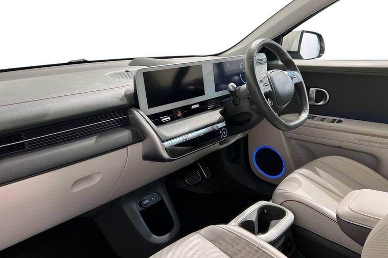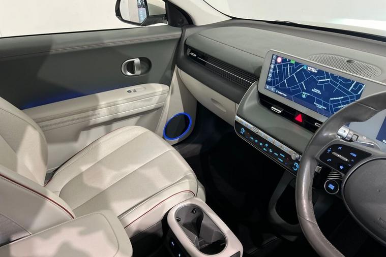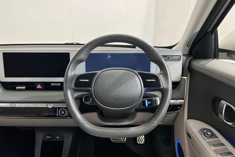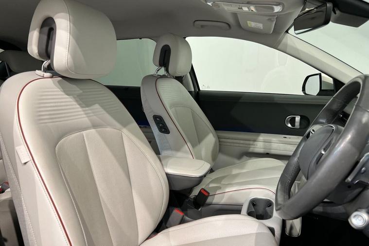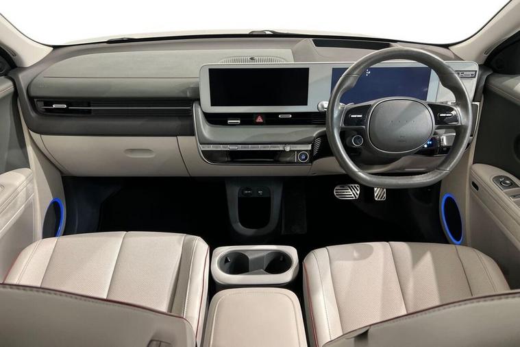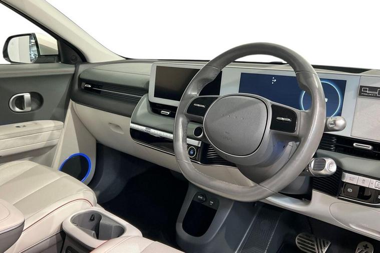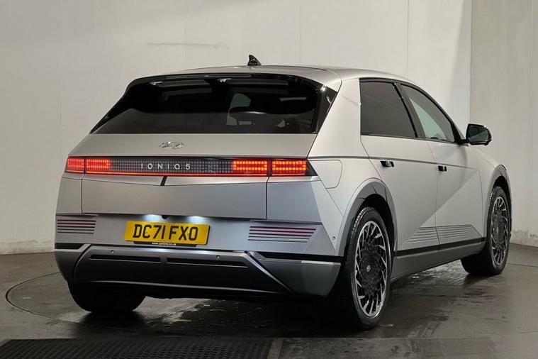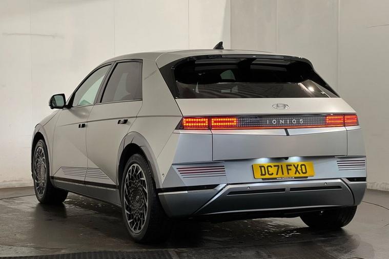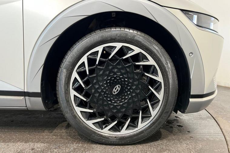 The Hyundai Ioniq 5 Project 45 is a limited-edition, all-wheel-drive electric vehicle launched in 2021 to celebrate the 45th anniversary of Hyundais first car, the Pony. It featured a unique matte gold finish, a solar roof to extend range and special pixelated LED lights. The interior is a high-spec version with features like relaxation front seats, a movable center console, and an upgraded Bose sound system This 2021 is a standout example, boasting a clear vehicle history check and MOT valid until September 2026, offering peace of mind for its next owner. This electric, four wheel drive model features a substantial 73 kWh battery, providing an impressive maximum range of 268 miles when new. With only one owner since its registration, this IONIQ 5 also comes equipped with a wireless phone charging pad, heated rear outer seats, Bluetooth connectivity with voice recognition, dual zone climate control, and memory seats for both the driver and front passenger. The IONIQ 5 Project 45 truly excels with its performance and practicality. Its acceleration from 0 to 60 mph in just 5.2 seconds demonstrates a dynamic driving experience that sets it apart from many other electric vehicles. Furthermore, the convenience of a full charge at home taking approximately 10 hours and 53 minutes, alongside the remarkable fastest public charging time of just 17 minutes to reach 80% capacity, ensures minimal disruption to your journeys. The generous boot space further enhances its appeal, making it a versatile choice for everyday use and longer trips alike.