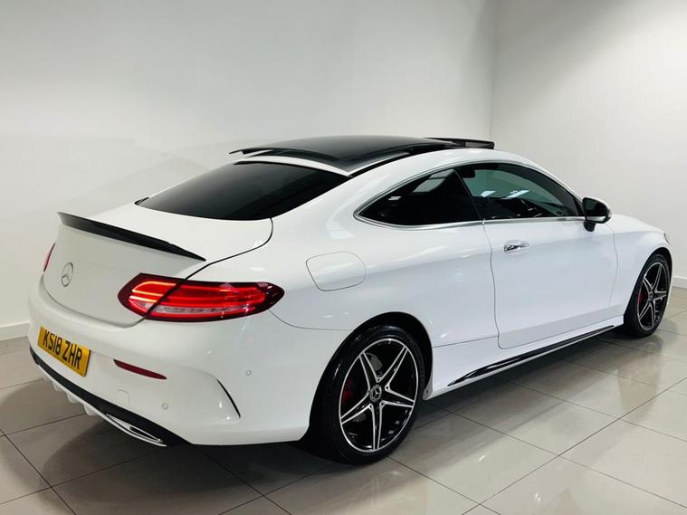 2018 (KS18 ZHR) Mercedes-Benz C220d AMG Line Premium Coupe 57, 000 Miles | ULEZ OK Finished in Polar White with Full Black Leather Interior This stunning Mercedes-Benz C-Class AMG Line Premium Coupe offers an exceptional blend of performance, refinement, and style. Presented in Polar White with luxurious leather upholstery and a panoramic glass roof, this model stands out as a superb example of a modern Mercedes coupe. Performance & Handling: 2.1L Turbo Diesel Engine 9G-Tronic Automatic Transmission with Paddle Shift Rear-Wheel Drive Dynamic Driving Modes (Eco, Comfort, Sport, Sport+) Cruise Control with Speed Limiter Premium Features & Styling: Panoramic Glass Roof AMG Line Exterior Styling Pack 18 AMG Alloy Wheels Full Leather Interior Upholstery Heated Front Seats Electric Memory Front Seats Privacy Glass Xenon Headlights with LED Daytime Running Lights Power Tailgate (Electric Boot) Technology & Interior: COMAND Satellite Navigation System Bluetooth Media & Hands-Free Connectivity Reversing Camera FM/AM/DAB Digital Radio Ambient Interior Lighting Dual-Zone Climate Control Multi-Function Flat-Bottom AMG Steering Wheel Additional Information: 57, 000 Miles from New ULEZ Compliant AA 128-Point Inspection Passed (Report Provided) Free HPI Certificate Nationwide Warranty Packages Available Any Inspection Welcome Included with the Vehicle: Indoor Viewing Available (Up to 20 Photos on Website) Over 100 Vehicles in Stock Debit Card Payments Accepted FCA-Approved Finance Partner Part Exchange Welcome Private Plate Transfers & Delivery Service Available on Request Contact us today to arrange a viewing or reserve this Mercedes-Benz C-Class AMG Line Premium Coupe with a deposit. A stylish and luxurious coupe refined performance with everyday comfort and ULEZ compliance.