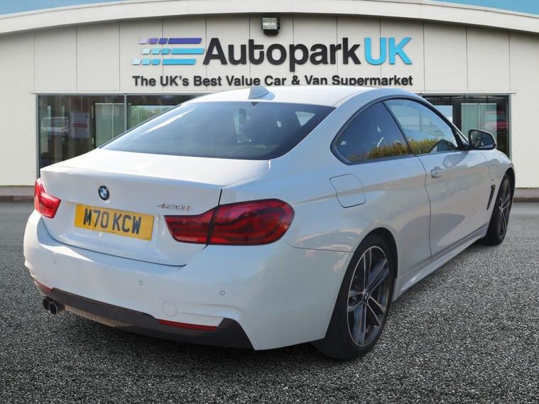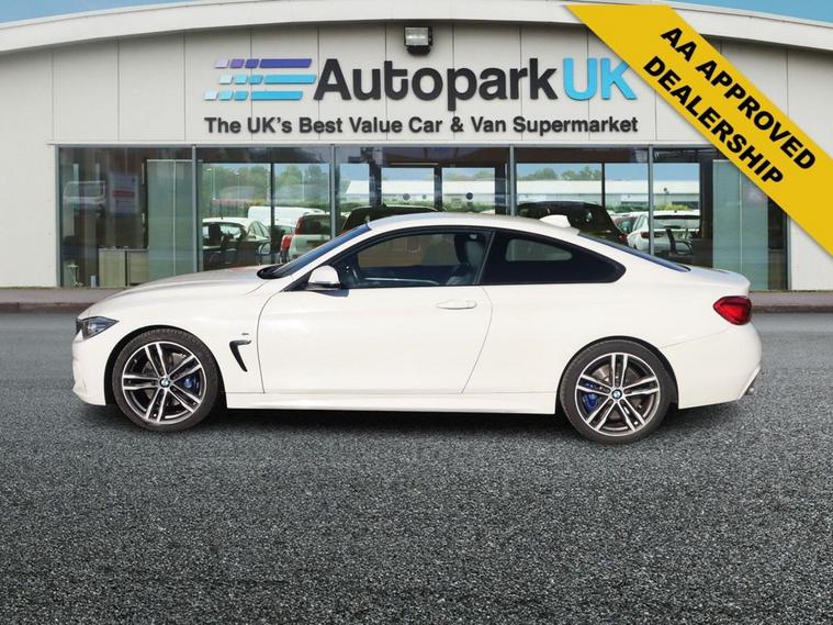 This 2018 BMW 4 Series 420i M Sport is presented with a clear vehicle history check and MOT valid until September 2026. This 4 Series has been cared for by one former keeper and has a great service history with the most recent carried out at 71K, offering peace of mind for its next owner. This stylish coupe features the desirable M Sport trim and is powered by a 2.0 litre petrol engine, meeting Euro 6 emission standards. Inside, you will find the impressive Loudspeaker System from Harman Kardon, part of the M Sport Plus Package, which also includes the Premium Branded Sound System and the convenient High Beam Assistant. This BMW 4 Series 420i M Sport stands out with its excellent fuel economy, achieving up to 49 miles per gallon, and benefits from a low insurance group, making it an economical choice. Its low CO2 emissions further contribute to its efficiency. Additionally, this model offers generous boot space, providing practicality for everyday use and longer journeys, setting it apart from many other vehicles in its class. At Autopark UK, we pride ourselves on quality. Each vehicle is meticulously selected by our experienced buying team for its excellent condition and unbeatable value. As part of our commitment, this vehicle has undergone - or will undergo - a thorough multipoint inspection under the AA Dealer Promise. We also provide flexible financing solutions to cater to all circumstances, with interest rates beginning at just 9.9%. No matter your location, we offer nationwide delivery at competitive rates, bringing your perfect vehicle straight to your door. Explore our extensive selection of cars and vans at dealer's website or reach out to our sales desk at 01915822038 to reserve this vehicle today.