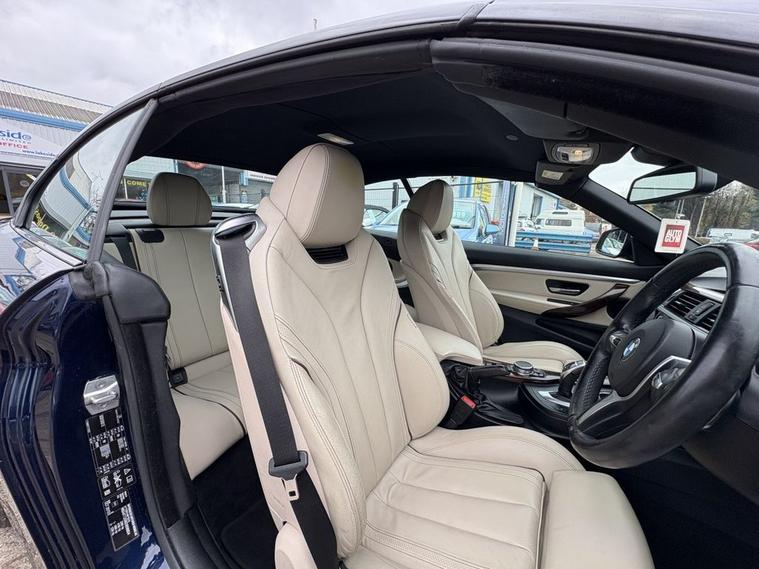 This blue 2015 BMW 4 Series 435d M Sport offers exceptional value with its remarkably low mileage of just 66, 580 miles for its age. This four wheel drive coupe is powered by a potent 3.0 litre diesel engine, meeting Euro 6 emissions standards. will be provided with a full 12 months MOT for your peace of mind, alongside a 3 month warranty. Inside, youll find luxurious Burr Walnut trim finishers with Pearl Chrome highlights, complemented by a Head Up Display and Speed Limit Display for enhanced driver awareness. The M Sport trim level ensures a dynamic driving experience, further enhanced by the impressive 0-60mph acceleration time of just 5.2 seconds, demonstrating its superior performance compared to other vehicles in its class. Parking is made effortless thanks to the Surround View system, which includes a 360 degree camera and a Reversing Assist Camera. This BMW 4 Series also benefits from a low insurance group, making it an economical choice.