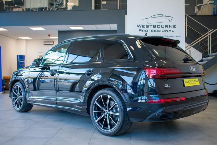 2022 22 Audi Q7 3.0 TFSI 55 Black Edition, finished in Mythos Black with Black Valcona Leather interior. Equipped with Audi MMI Satellite Navigation Plus, Parking System Plus, Matrix LED Headlights, Smartphone Interface, Virtual Cockpit, Heated Electric Front Seats with Drivers Memory Function, Audi Music Interface, Adaptive Air Suspension, Drive Select, Wireless Phone Charging, Cruise Control, DAB Radio, Automatic 4-Zone Climate Control, Power Tailgate, Rear View Camera, Lane Departure Warning, Tyre Pressure Monitoring System and much more. A one owner and VAT qualifying example.