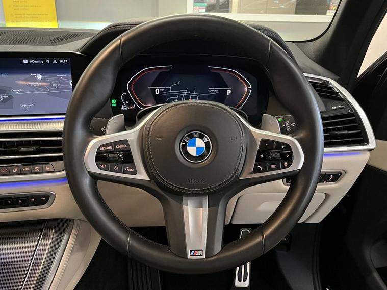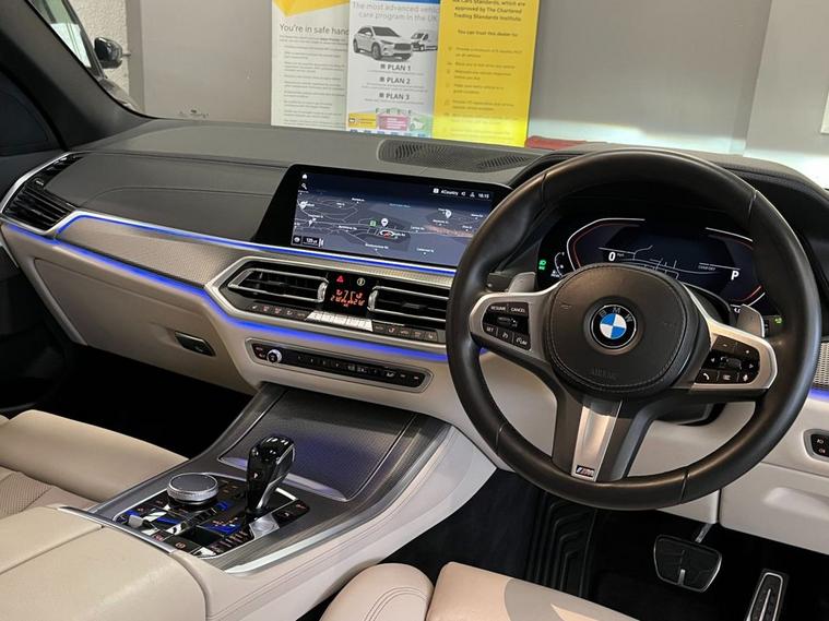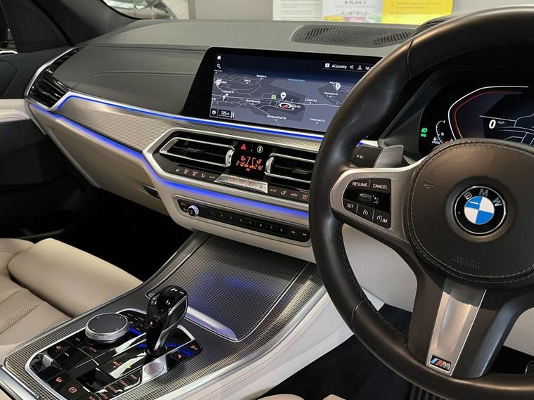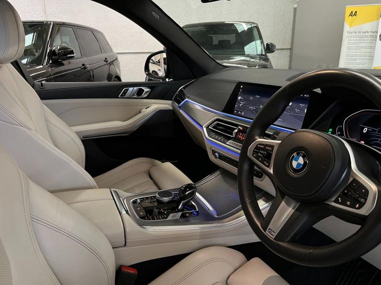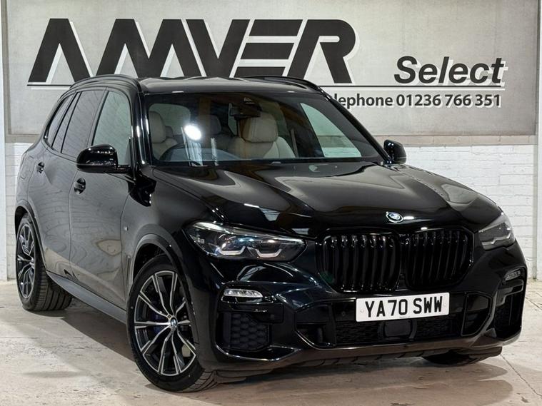 A great looking 7-seater BMW X5 M Sport with just two owners from new, 64, 000 miles and full BMW main dealer service history in Black Sapphire Metallic trimmed in Ivory perforated Vernasca leather with Aluminium Tetragon interior finishers. Very stylish with M aerodynamic bodystyling, BMW Individual gloss black shadowline window surrounds, gloss black grilles, rear privacy glass and 20 inch alloy wheels and well equipped with electronically adjustable air suspension (photographed here in both low and normal height modes), heated electric front seats with adjustable side bolsters and dual driver memory, electrically adjustable rear seats which also fold electrically to allow access to the third row seating, widescreen satellite navigation with touchpad and voice controls, digital instrument cluster which can be configured to display navigation maps directly in front of the steering wheel, Bluetooth and smartphone integration via Apple CarPlay and Android Auto, wireless phone charging in the centre console, adjustable coloured ambient lighting, automatic headlights, rain sensor wipers, cruise control, speed assist, lane keep assist with steering intervention, front and rear parking sensors with reversing camera, M illuminated door sill plates, electric powered tailgate and more. A superb two-owner example with full BMW service history properly recorded on the BMW iDrive system supplied with complete book pack in BMW wallet, two keys and six months Momentum Plan 3 Pro warranty so that you can drive away with total confidence knowing that you are benefiting from what is probably the best warranty cover available in the UK today. Amver Select are proud to have been awarded Auto Traders Highly Rated status for 2025, an honour that we have received every year since its introduction in 2018. In our current premises for nearly two decades, we are conveniently located between Glasgow and Edinburgh and are open from 10:00am to 6:00pm Monday to Friday. We have committed to AA Cars Standards, basically the AAs Commandments of Gold Standard customer service. All cars are provided with a minimum 6 months MOT, 12 months AA basic breakdown cover and other exclusive AA member benefits. Finance available, subject to approval. Part-exchange welcome.