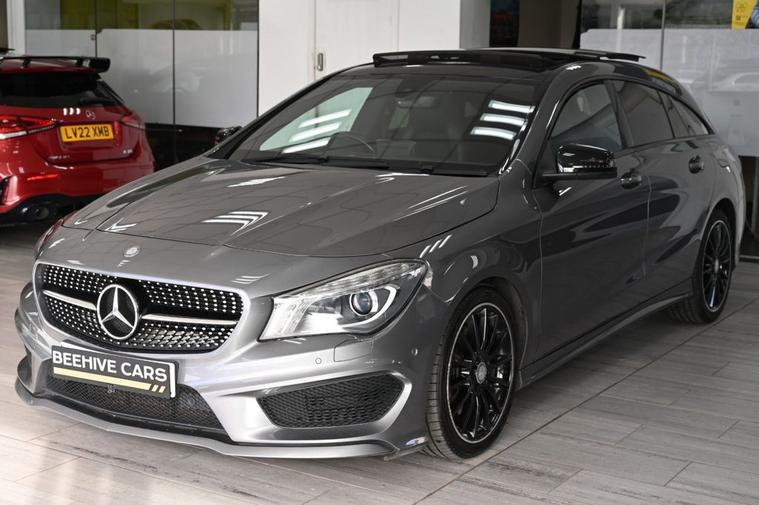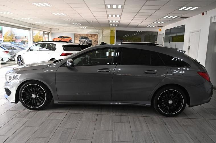DRIVE AWAY TODAY OR HOME DELIVERY TO YOUR DOORSTEP FINANCE & PART EXCHANGE ARRANGED ONLINE** 7 DAY MONEY BACK GUARANTEE** Lovely car Mercedes Cla220d amg sport shooting brake in metallic grey with good service history sat nav cd radio bluetooth media usb panoramic glass roof half leather seats with armrest heated seats electric folding door mirrors front parking aid sensors xenon lights flat bottom steering wheel with f1 style paddleshifts eco comfort sport individual dynamic driving modes electric push button tailgate alloys privacy