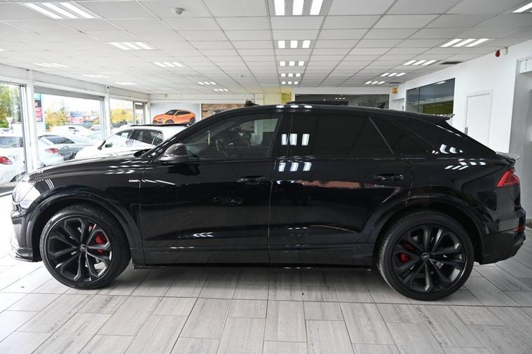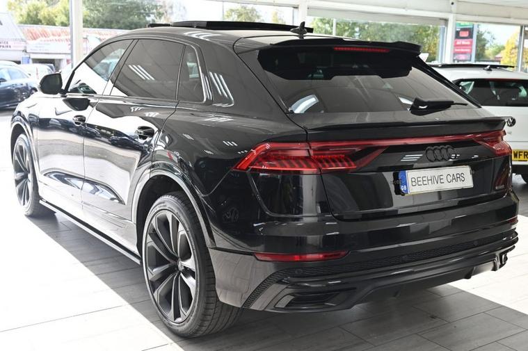 DRIVE AWAY TODAY OR FREE HOME DELIVERY TO YOUR DOORSTEP FINANCE & PART EXCHANGE ARRANGED ONLINE** 7 DAY MONEY BACK GUARANTEE** Lovely 4x4 Audi Q8 3.0 tdi quattro v6 50 edition suv tiptronic in metallic black with service history sat nav dab radio bluetooth media phone apps news weather reverse camera panoramic glass roof full black s-line leather seats with armrest heated seats electric memory seats electric folding door mirrors front and rear parking aid sensors xenon lights flat bottom s-line steering wheel with f1 style paddleshifts push button start stop electric push button tailgate maxton bodystyling kit alloys privacy