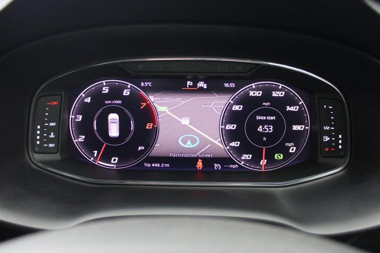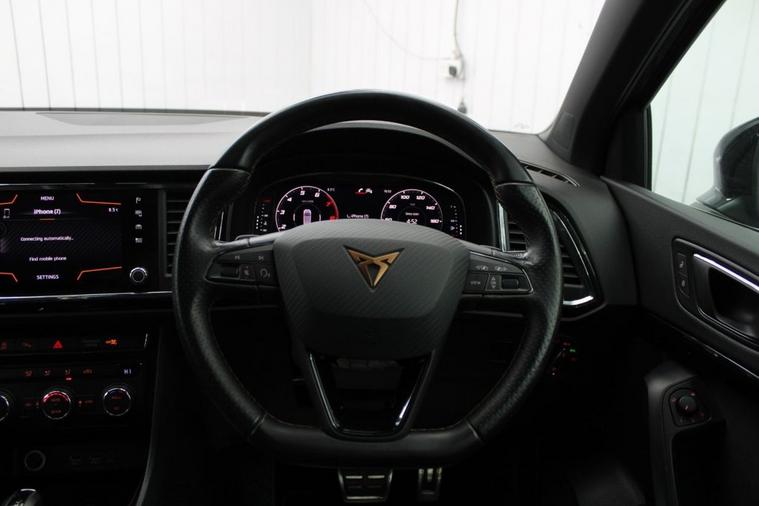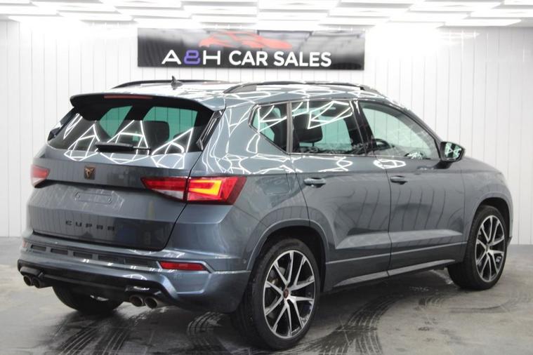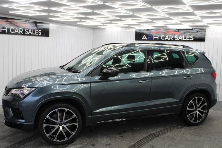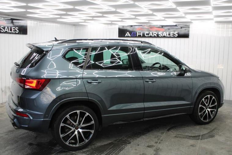 This 2020 SEAT CUPRA Ateca TSI offers an exhilarating driving experience with its impressive 0-60mph time of just 4.9 seconds. This four wheel drive model is powered by a robust 2.0 litre petrol engine and meets Euro 6 emission standards. It boasts a substantial towing weight of 2150 kg, making it a versatile choice for various needs. Inside, youll find a host of convenient features including a Top View Camera with 360 degree parking assistance, Full Link Smartphone Integration compatible with Android Auto and Apple CarPlay, and a wireless phone charger. The cabin also benefits from dual zone climate control and KESSY keyless entry and go for effortless access and comfort. The performance of this CUPRA Ateca sets it apart, with its rapid acceleration demonstrating its dynamic capabilities. The combination of its powerful engine, four wheel drive system, and advanced technology ensures a superior driving experience compared to many other vehicles in its class. Whether you are navigating city streets or embarking on longer journeys, this SEAT CUPRA Ateca provides a blend of performance, practicality, and modern convenience.