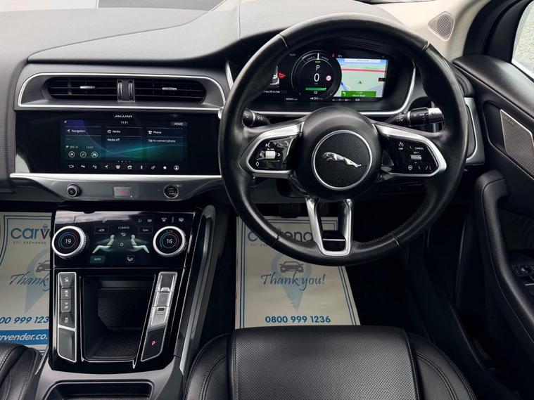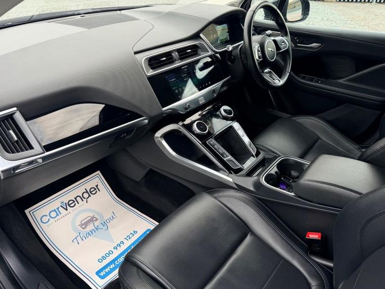 At Carvender experience the perfect blend of cutting-edge fully electric performance and timeless British luxury with this stunning 2019 Jaguar I-Pace 400 90kWh S 4WD 5dr. This I-Pace with 4WD is a fully electric SUV which exhibit luxury and modern features on the road. This I-Pace is powered by a 90kWh battery and dual electric motors producing an impressive 400 brake horse power while giving you 287 miles charging range in single charge (by books). This I-Pace with its striking design, uncompromising comfort and instant electric performance make it a truly premium driving experience on the road. This Jaguar I-Pace is equipped with Luxury and Comfort features including Rear & Front Parking Sensors, Reversing Camera, Leather Upholstery, Cruise Control, Lane Keeping Assist, Blind Spot Alert, , SatNav, Mobile Connection, Apple CarPlay/Android Auto, Selectable Different Driving Modes and much more. This I-Pace looked after very well as we have 3 services in the file which have been carried out at the mileages of 9714, 14855 and 30161 on 10/07/2025. Dont miss the opportunity to own this exceptional SUV. Contact us today to arrange test drive or visit our website for home delivery with 14 days money back guarantee.