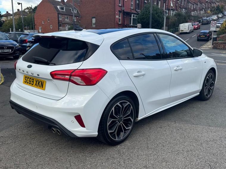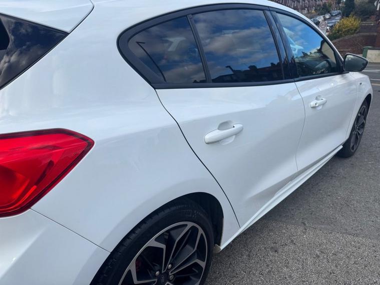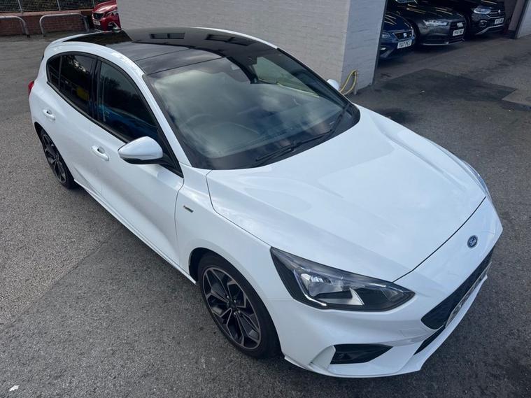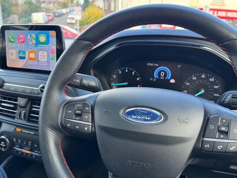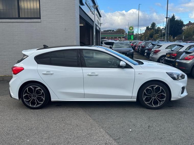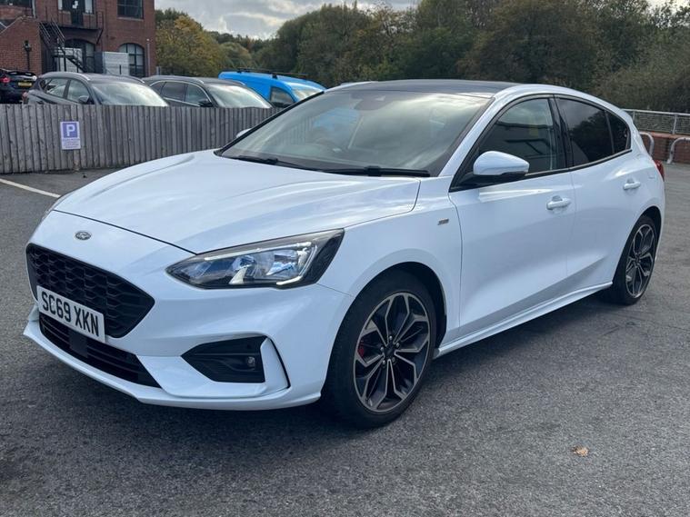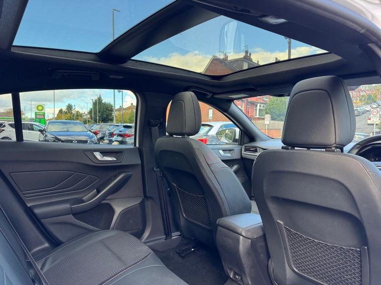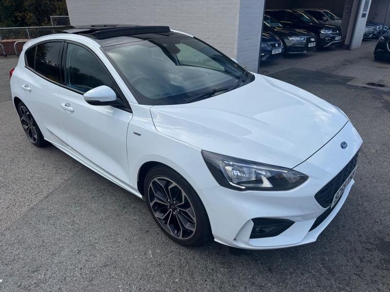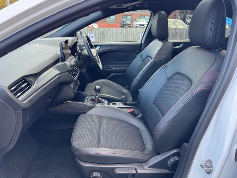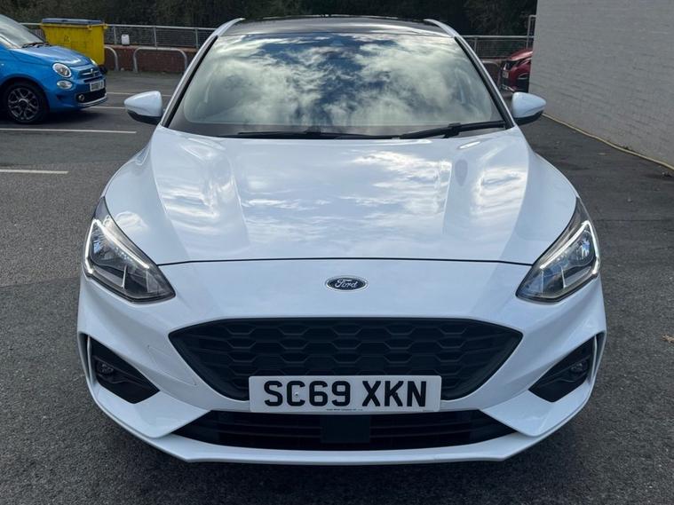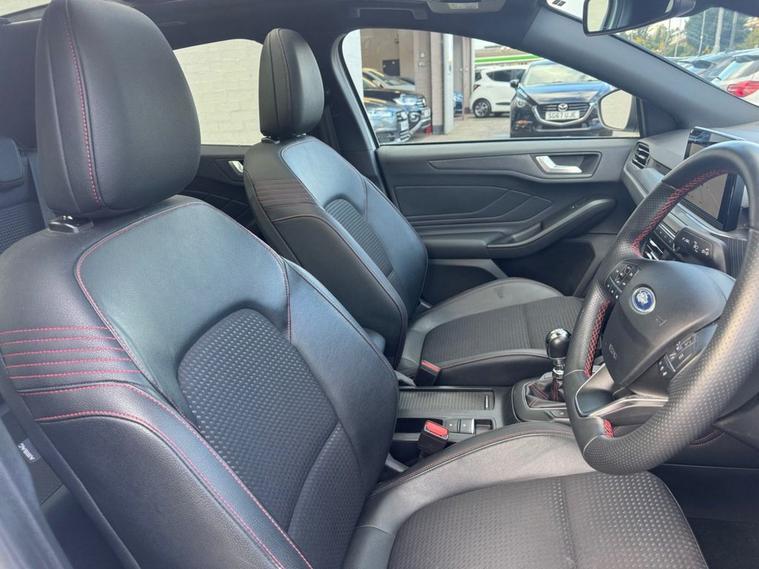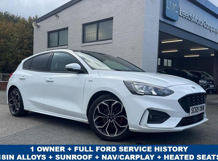 This 2019 Ford Focus ST-Line X presents an exceptional ownership proposition with its remarkably low mileage of just 27, 550 miles and a single owner from new. Powered by a responsive 1.5L petrol engine, this Euro 6 compliant model offers an engaging driving experience with a 0-60mph time of 8.3 seconds. Its full dealership service history provides peace of mind, and it will be supplied with a 12-month MOT for your assurance. The ST-Line X trim level enhances the Focus with desirable features designed for comfort and convenience. Enjoy the open air with the panoramic roof (£995 upgrade), and in cooler weather, the heated seats and steering wheel ensures a comfortable ride. Inside, youll find a premium centre console with a sliding armrest and a cupholder with a sliding cover, alongside a 12V front power point. The DEATC dual-zone electronic automatic temperature control allows for personalised cabin comfort for both driver and passenger. These features, combined with its excellent provenance, make this Ford Focus a standout choice compared to other vehicles in its class.