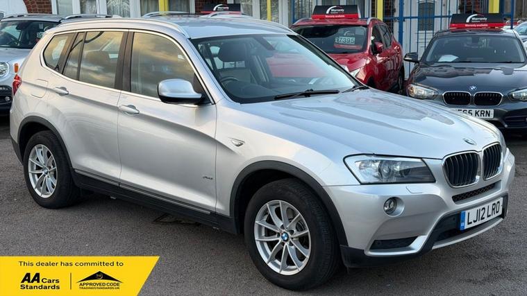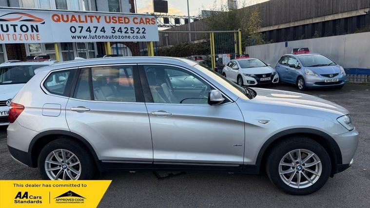 3 MONTHS FREE WARRANTY, LUTON AUTOZONE ARE VERY PLEASED TO BE ADVERTISING THIS BMW X3 2.0 20D SE SUV 5DR DIESEL STEPTRONIC XDRIVE EURO 5 WITH GOOD SERVICE HISTORY WITH 9 STAMPS + FRESH SERVICE, 1 FORMER KEEPER, ALLOY WHEELS, AIR CONDITIONING, NAVIGATION SYSTEM, CLIMATE CONTROL, PARKING SENSORS, BMW PROFESSIONAL RADIO - SINGLE CD AND MP3, BLUETOOTH HANDS FREE WITH USB, DAB DIGITAL RADIO, SEATS-FRONT HEATED, RAIN SENSORS, CRUISE CONTROL, REMOTE CONTROL LOCKING, ELECTRIC WINDOWS, 2 KEYS, FOR MORE INFORMATION PLEASE CLICK ON DESCRIPTION, SILVER, GOLD AND PLATINUM EXTENDED WARRANTIES ARE AVAILABLE, VERY WELL LOOKED AFTER, VERY CLEAN IN AND OUT, BODYWORK GOOD, INTERIOR GOOD CONDITION, TYRES GOOD CONDITION, ALL CARS COME WITH 6+ MONTHS MOT AND 12 MONTHS AA BREAKDOWN COVER, NEW MOT COMING SOON P/X WELCOME