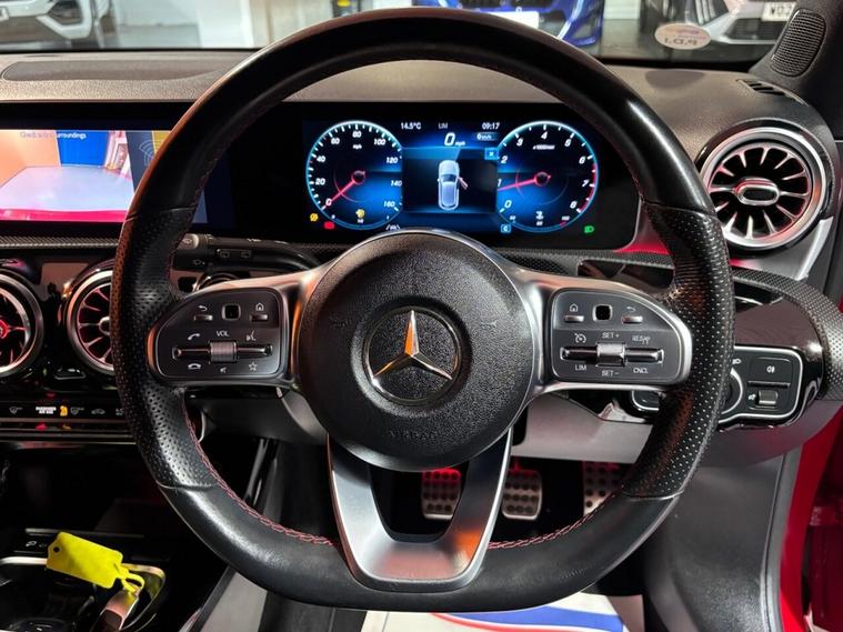 This 2019 Mercedes Benz A Class A200 AMG Line (Premium) boasts exceptionally low mileage for its age, having covered just 25, 933 miles. Powered by a 1.3 litre petrol engine and meeting Euro 6 emissions standards, this model offers a refined driving experience. It comes equipped with the desirable Premium Package, which includes convenient keyless entry, and the Advanced Navigation Package to guide your journeys. Inside, youll find a leather trimmed, 3-spoke multi-function steering wheel with a flattened bottom section and perforated grip area, complemented by body coloured door handles with a chrome accent. Comfort is assured with the THERMOTRONIC luxury automatic climate control, featuring two zones and a display for precise temperature management. The A200 AMG Line (Premium) is designed for both performance and practicality. Its acceleration is impressive, reaching 0-60mph in just 8.2 seconds, demonstrating its responsive nature. This particular model also offers a large boot space, making it a versatile choice for everyday needs and longer trips. These highlights, including the low mileage and comprehensive feature set, position this Mercedes Benz A Class as a superior option compared to other vehicles in its class.