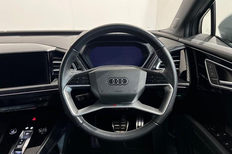 This 2022 Audi Q4 e-tron S line boasts a single owner from new, offering a pristine example of electric motoring. As a Four Wheel Drive model, it combines the advanced technology of an electric powertrain with the assured grip and stability expected from Audi. With a substantial 82 kWh battery, this Q4 e-tron is capable of achieving an impressive 312 miles on a full charge, making it ideal for both daily commutes and longer journeys. Charging is convenient, taking approximately 11 hours and 30 minutes at home using a 7kW charger, while rapid public charging can replenish the battery from empty to 80% in as little as 38 minutes. The vehicle is also in excellent condition, with its MOT valid until September 2026. The S line trim enhances the already sophisticated Q4 e-tron with a range of desirable features. Youll appreciate the clear visibility provided by the LED headlights with LED daytime running lights, and staying connected is effortless with the integrated Bluetooth interface. For comfort, the vehicle includes comfort auxiliary air conditioning, ensuring a pleasant cabin temperature in all conditions, and heated front seats for those colder mornings. Parking is made simpler with rear parking sensors. Performance is also a strong point, with an acceleration of 0-60mph in just 6.2 seconds, demonstrating its dynamic capability. Furthermore, the Q4 e-tron offers generous boot space, providing ample room for luggage or shopping, setting it apart from many other electric vehicles in its class.