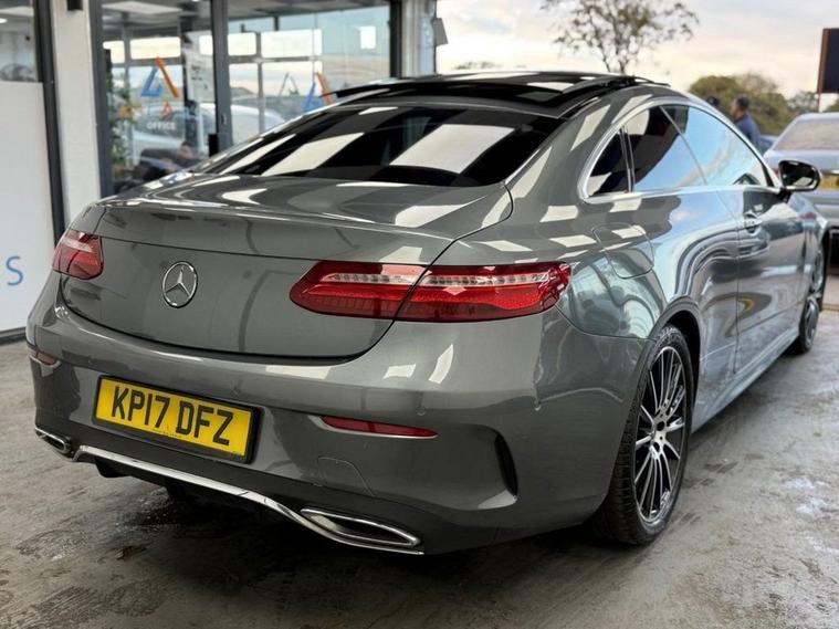 Now available: this elegant Mercedes-Benz E220d AMG Line Premium Coupe, finished in striking metallic grey and powered by a refined 2.0-litre diesel engine producing 194PS. Paired with the G-Tronic+ automatic gearbox, this E-Class delivers smooth power, impressive efficiency, and refined comfort in every drive. The AMG Line (Premium) trim enhances both style and performance offering a luxurious interior, distinctive AMG styling, and advanced technology throughout. This E-Class Coupe represents true Mercedes-Benz craftsmanship, blending dynamic looks with exceptional long-distance comfort. Vehicle Details: Engine: 2.0L Diesel (194 PS) Transmission: G-Tronic+ Automatic Drivetrain: Rear-Wheel Drive Fuel Type: Diesel Emissions: Euro 6 Doors: 2 Body Style: Coupe Colour: Metallic Grey Trim: AMG Line (Premium) Mileage: [insert mileage] Keys: 2 service history: -service A 23.10.2018 -service B 10.02.2020 -service C 03.02.2022 -service D 04.01.2023 -service E 23.10.2018 Highlighted Features: AMG Line Exterior Styling with Sport Body Kit 19 AMG Alloy Wheels Premium Package with Panoramic Glass Roof Full Leather Upholstery with Heated Front Seats Ambient Interior Lighting with Colour Selection 12.3 Digital Cockpit & COMAND Navigation System Apple CarPlay & Android Auto Connectivity Front & Rear Parking Sensors with Reversing Camera Dual-Zone Climate Control Cruise Control with Speed Limiter Keyless Entry & Push Button Start LED Intelligent Headlights with Daytime Running Lights HPI clear, fully inspected, and prepared to high standards Finance available part exchange welcome Enquire today to arrange a test drive or reserve this luxury coupe Power, elegance, and technology the ultimate Mercedes-Benz experience