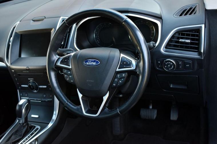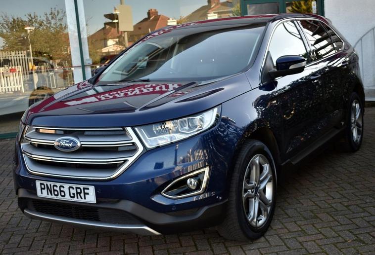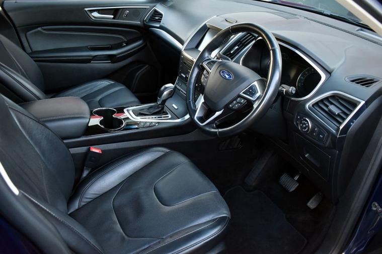 Blue Jeans metallic with full Ebony leather interior. Specification: Panoramic tilt/slide glass sunroof with electric sun shade, Ford SYNC 2 navigation system, electrically operated front seats with 3-position driver memory and offering both heating and cooling, heated rear seats, smartphone interface with wireless audio streaming, active park assist with reverse camera, DAB digital radio CD, multi-function steering wheel with cruise control/limiter, power tailgate, electric folding door mirrors, automatic headlamps and wipers, privacy glass, 19 inch alloy wheels, dual-zone digital climate control, daytime running lights, keyless stop/start, 60/40 split-folding rear seats, space-saver spare wheel, detachable tow bar and more. Only two owners from new with comprehensive service history and both serviced and MOTd at point of sale in our on-site service centre. Original handbook pack and two remote keys.