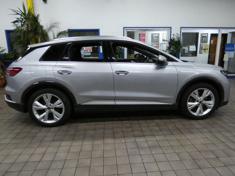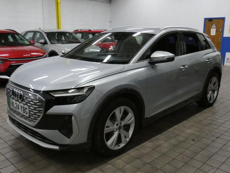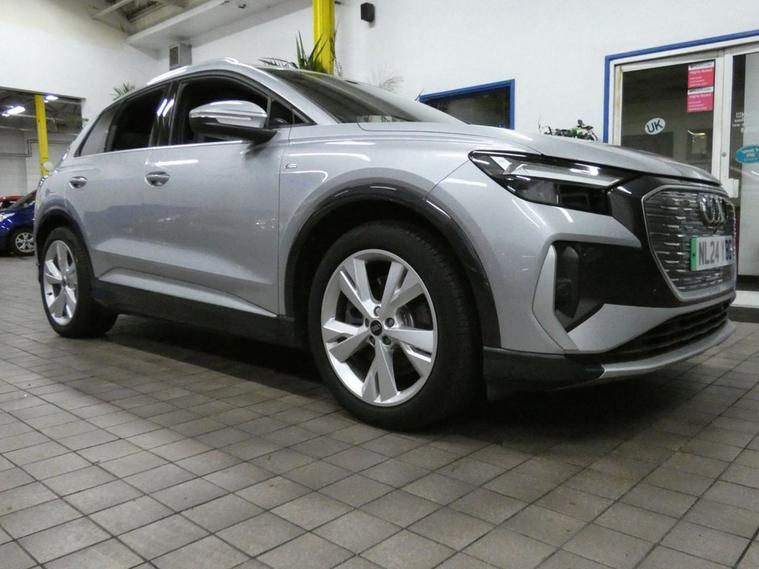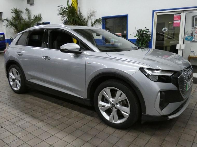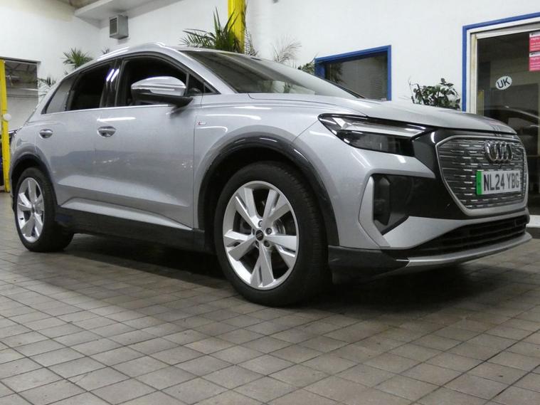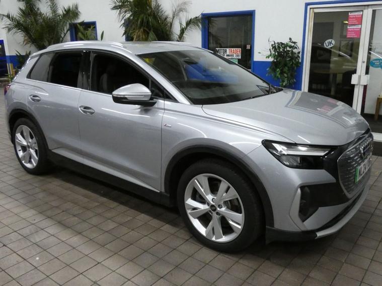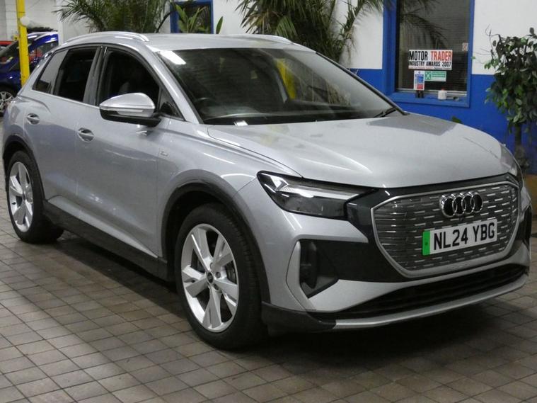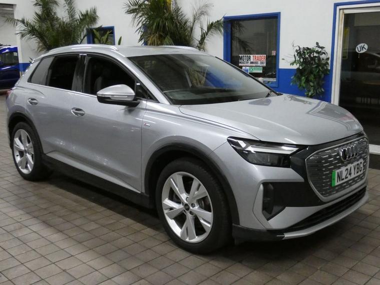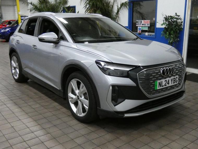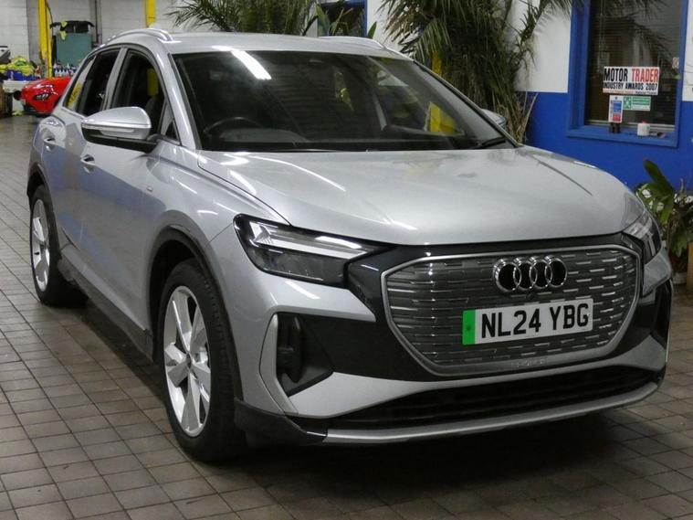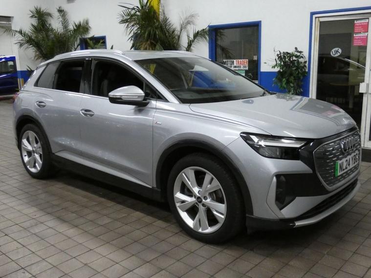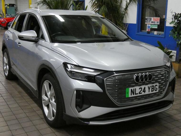 WE ARE DELIGHTED TO BE ABLE TO OFFER THIS AUDI Q4 -TRON 45 S LINE, IT IS IN GREAT CONDITION AS YOU WOULD EXPECT FROM A CHERISHED LOW MILEAGE EXAMPLE THAT HAS COVERED JUST 10, 425 MILES FROM NEW, OUR AUDI HAS HAD JUST 1 OWNER FROM NEW, FIRST MOT TILL MARCH 2027, AUDI WARRANTY TILL MARCH 2027, AS A EURO 6 VEHICLE IT IS ULEZ AND CAZ COMPLIANT MEANING THERE WILL BE NO PENALTIES FOR DRIVING INTO MAJOR CITIES, THIS AUDI IS WELL EQUIPPED, IT COMES WITH SAT NAV, BLUETOOTH, DAB RADIO, LEATHER INTERIOR, HEATED SEATS, REAR VIEW CAMERA, CRUISE CONTROL, PARKING SENSORS, IT WILL BE SUPPLIED WITH 2 KEYS, ALL OF OUR SOURCED VEHICLES COME COSMETICALLY PREPARED TO A VERY HIGH STANDARD, WE ALSO OFFER A UK WIDE DELIVERY SERVICE ALONG WITH TAILOR MADE BESPOKE FINANCE PACKAGES, WE PRIDE OURSELVES ON OUR 5 STAR REVIEWS AND ALWAYS AIM TO PROVIDE OUR CUSTOMERS WITH THE BEST POSSIBLE EXPERIENCE, PLEASE GIVE US A CALL FOR MORE INFORMATION ABOUT ANY OF OUR CARS, OUR FRIENDLY STAFF WILL BE MORE THAN HAPPY TO ASSIST YOU This electric vehicle boasts an impressive battery total capacity of 82 kWh, offering a maximum range of 342 miles when new. For your convenience, a full charge at home using a 7kW charger takes approximately 13 hours, while rapid public charging can replenish the battery from empty to 80% in just 28 minutes. The performance of this Audi Q4 e-tron S line is further enhanced by its rapid acceleration, reaching 0-60mph in a swift 6.7 seconds, demonstrating its capability. Autoinfusion Ltd, is a family run business with over 30 years motoring experience. On our website you will find our vehicles are generally advertised with upto 100 exterior and interior pictures, 360 interior images, exterior panoramic views and web video showcasing our stock. As an AA approved garage, prior to sale, the majority of our vehicles are inspected by an AA trained technician and pass a full 128 multi-point AA inspection, these cars are highlighted on our website with the AA logo. Please note AA inspections are also available on request if the vehicle has not yet been inspected. All of our stock is constantly price checked ensuring you pay and receive the best package. You will also find details of special promotions on our website. Contact us to book an appointment for a viewing and test drive. We can conduct a live viewing of the vehicle to your mobile device or send you a personalised video highlighting the key features or anything else you may require, which can be viewed in your own time. With our Finance options we can provide class leading packages and rates. We highly recommend you reserve this car on-line , please visit dealer's website or call one of our sales specialists for more information. We look forward to welcoming you to Autoinfusion.