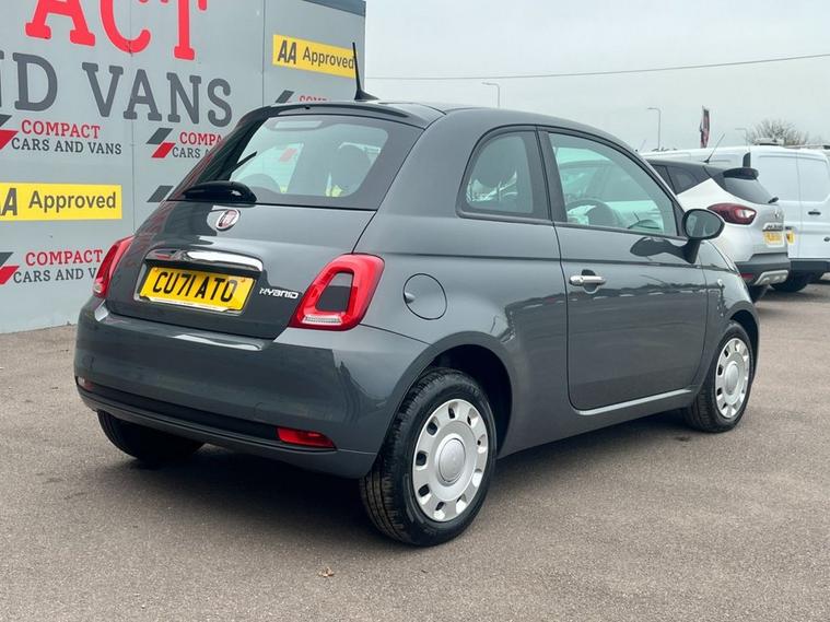 Compact Cars And Vans are delighted to present a superb example Fiat 500 with less than 9500 miles. The Fiat is powered by a popular 1.0 litre MHEV petrol engine boasting 57.7mpg on a combined cycle and is just £195 a year to tax! The 500 is a great choice for first time driver with this particular model benefiting from group 8 insurance. The Pop Hybrid model includes spec such as telephone connection, air conditioning and so much more.