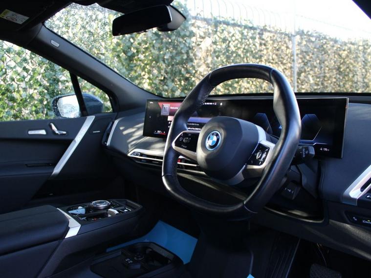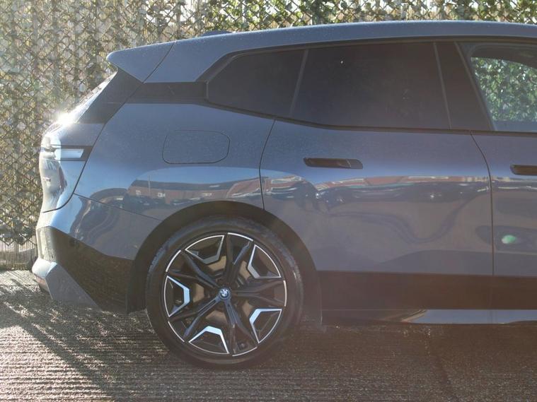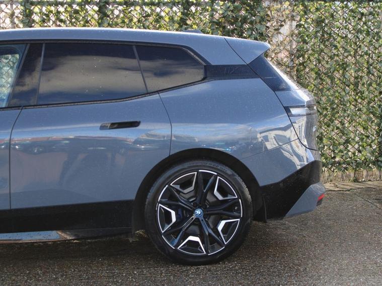 **97% BATTERY HEALTH** This 2022 BMW iX 50 M Sport is a superb example, having had only one owner since new. This electric four wheel drive SUV boasts a substantial 112 kWh battery, offering an impressive maximum range of 381 miles when new. It features the desirable M Sport trim and includes the Comfort Package, which adds convenient features like keyless entry, memory seats, and a heated steering wheel. Further enhancing its appeal are the striking 22 inch bi colour aero alloy wheels and advanced front and rear air suspension for a refined driving experience. The performance of this BMW iX is truly exceptional, with a rapid 0 to 60 mph acceleration time of just 4.6 seconds, demonstrating its dynamic capabilities. For those needing to tow, it has a generous towing weight of 2500 kg. Charging is also convenient, with a full charge taking approximately 16 hours at home using a 7kW charger, and a rapid charge to 80% achievable in just 39 minutes at a public DC charging station capable of up to 195kW. These highlights indicate how this vehicle offers a superior combination of range, performance, and charging convenience compared to many other electric SUVs.