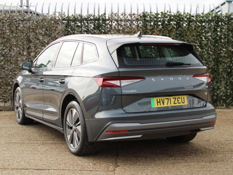 **90.4% BATTERY HEALTH** This 2021 Skoda Enyaq 80 is a superb example, having been owned by just one person since new. This electric SUV offers a generous battery total capacity of 82 kWh, providing a maximum range of 331 miles when new. It comes equipped with a Light and Rain Sensor featuring an auto dimming rear view mirror and automatic headlights, a Drive Package including a heated steering wheel, and Wireless Smartlink compatible with Android Auto. For convenience, it also boasts a Parking Package with front and rear sensors and a rear camera, alongside dual zone climate control. The Skoda Enyaq 80 stands out with its impressive electric capabilities. Its maximum range of 331 miles means fewer stops on longer journeys, a significant advantage over many other electric vehicles. Charging is flexible, with a full charge at home taking approximately 13 hours on a 7kW charger, and a rapid charge to 80% achievable in just 1 hour and 14 minutes at a public charging station. These features combine to offer a practical and enjoyable driving experience.