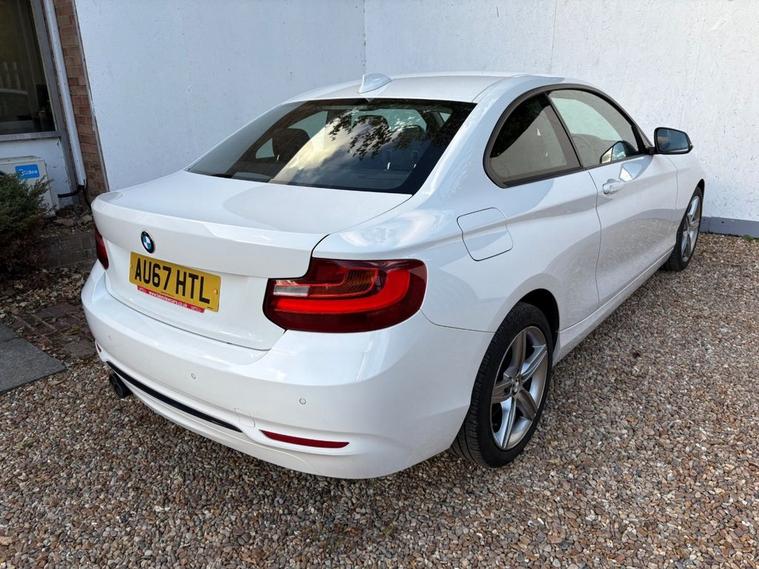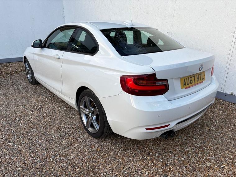 A SUPERBLY PRESENTED BMW 2 SERIES FINISHED IN WHITE. COMES WITH 2 KEYS, SERVICE HISTORY AND FEATURES INCLUDING, SATELLITE NAVIGATION, BLUETOOTH HANDS-FREE, AIR CONDITIONING, DAB DIGITAL RADIO/CD PLAYER WITH AUX AND USB POINT, BLUETOOTH MEDIA CONNECTIVITY, FRONT AND REAR OPTICAL PARKING SENSORS, MULTI FUNCTION LEATHER STEERING WHEEL, CRUISE CONTROL, AUTO START/STOP, ECO-PRO/NORMAL/SPORT DRIVING MODES, AUTO LIGHTS, AUTO WIPERS, ELECTRIC WINDOWS, ELECTRIC MIRRORS, KEYLESS START/STOP, 6 SPEED MANUAL GEARBOX, REMOTE CENTRAL LOCKING AND 17 ALLOY WHEELS.