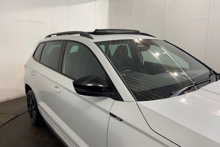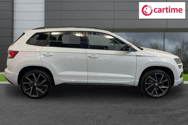 This 2021 Skoda Karoq TSI SportLine is a superb example, having had only one owner since new. It boasts a responsive 1.5 litre petrol engine, meeting Euro 6 emissions standards, and is presented in the sporty SportLine trim. Key features include a helpful rear view camera with parking assistance, automatic headlights for convenience, and the KESSY keyless entry and start system for effortless access. Enjoy the modern convenience of wireless phone charging and a fixed panoramic sunroof that floods the cabin with natural light. The Karoq offers a generous boot space, making it incredibly practical for everyday use and longer journeys. Its performance is equally impressive, with a brisk 0 to 60 miles per hour acceleration time of just 8.4 seconds, demonstrating its capability. These highlights, such as the spacious boot and swift acceleration, set this particular Skoda Karoq apart from many other vehicles in its class, offering a superior blend of practicality and driving enjoyment.