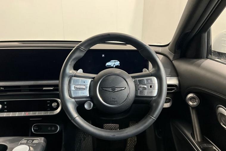 This 2022 Genesis GV60 Premium is a superb example, having had only one owner since new. This electric vehicle boasts a 77 kWh battery, offering an impressive maximum range of 321 miles when fully charged. For convenience, it features auto headlights with a dusk sensor, front and rear parking sensors for easier manoeuvring, and a helpful head up display. Inside, youll find front air conditioning with dual zone adjustment and smart cruise control with start stop functionality. The GV60 Premium stands out with its exceptional electric range of 321 miles, demonstrating its capability for longer journeys compared to many other electric cars. Charging is flexible, with a full charge at home taking approximately 38 hours and 8 minutes using a 7kW charger, while rapid public charging can take you from empty to 80% in just 20 minutes. Furthermore, this model offers a large boot space, providing ample room for luggage or shopping, making it a practical choice for everyday use and getaways.
