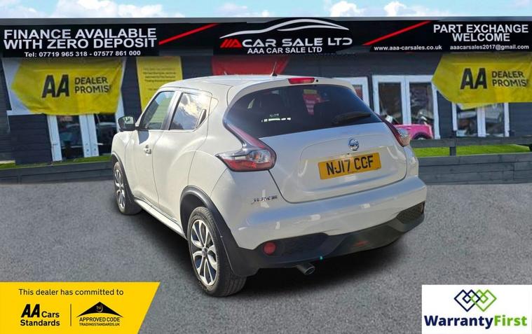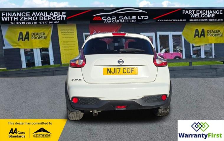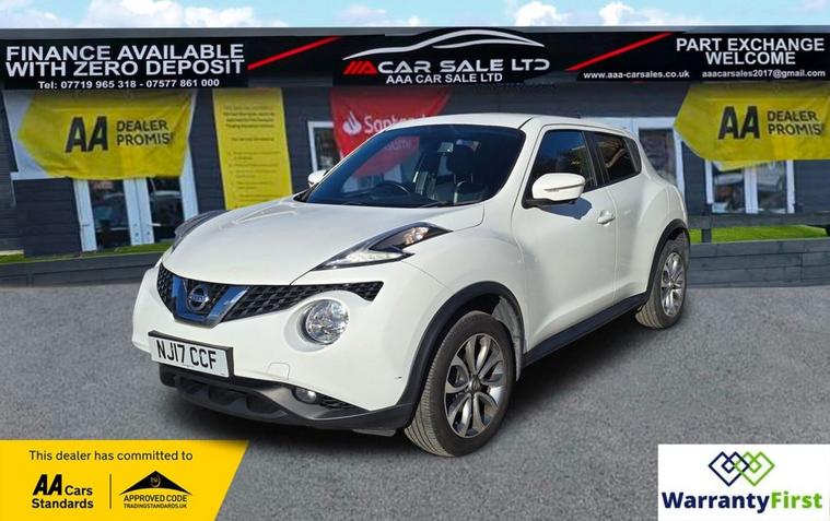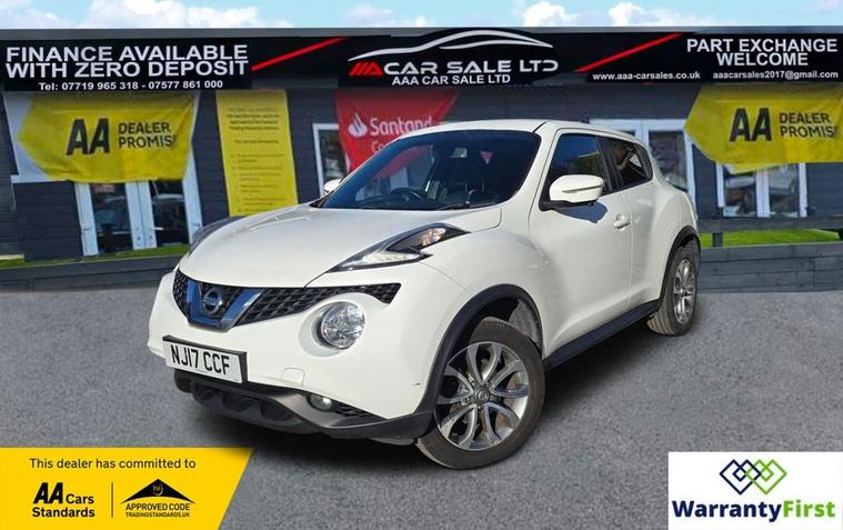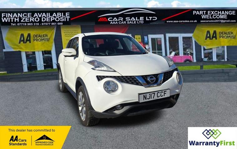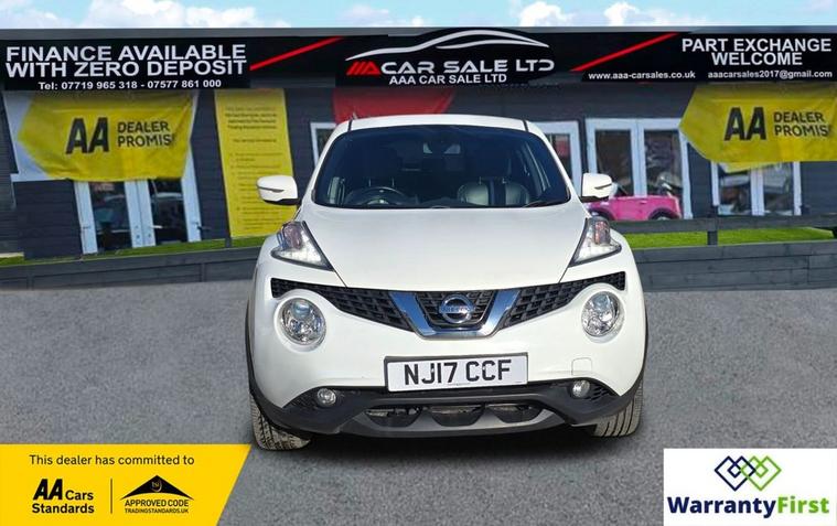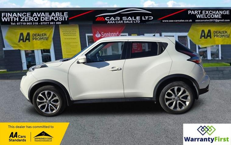 **AAA CAR SALES DARLINGTON LTD HAVE THE PLEASURE TO PRESENT NISSAN JUKE 1.5 dCi Tekna SUV 5dr Diesel Manual Euro 6 (s/s) (110 ps) IN ARTIC WHITE PAINT WORK, SERVICE HISTORY SERVICED AT 5K, 12K, 17K, 40K, 54K AND A SERVICE BY US AT 74K, ALL OUR CARS GO THROUGH 72 POINT INSPECTION, ALL OF OUR CARS COME WITH 12 MONTHS AA BREAKDOWN COVER, FRESH MOT WITHOUT ADVISORIES, INTERIM SERVICE, HPI CHECKED VIA EXPERIAN, 3 MONTHS WARRANTY WITH THE OPTION TO UPGRADE ***AUTOTRADER CUSTOMER SERVICE AWARD 2019, 2020, 2021, 2022, 2023 and 2024 YEAR ON YEAR***, WE ARE OPEN 7 DAYS A WEEK FOR YOUR CONVIENIENCE, CALL 01325950841 OR EMAIL US AT hello dealer's website or visit our website dealer's website , Service history, Clean bodywork, Cloth interior - Clean Condition, Tyre condition good, YOU CAN BUY WITH FULL CONFIDENCE FROM AAA CARS CHECK OUR AUTOTRADER REVIEWS FOR FULL PEACE OF MIND,