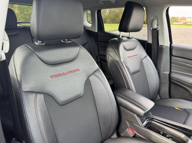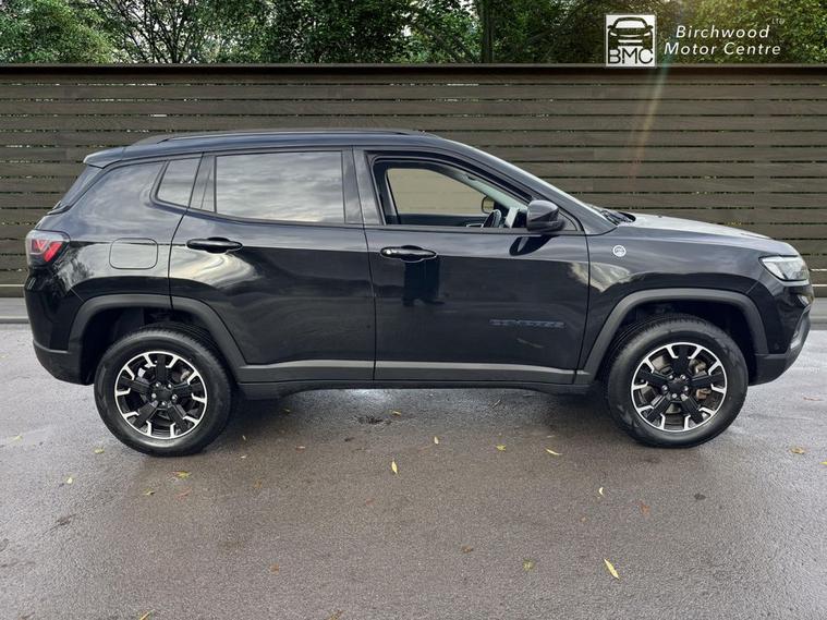 This 2022 Jeep Compass Trailhawk GSE T4 Plug-in Hybrid boasts a pristine vehicle history, having had only one owner since new. This exceptional example of the Trailhawk variant is equipped with a 1.3 litre petrol plug in hybrid engine and a four wheel drive drivetrain, meeting the Euro 6 emission class. It comes with a clear vehicle history check, offering peace of mind. Inside, youll find luxurious ventilated leather seats with memory function, heated front seats for added comfort, and a convenient wireless charging pad for your devices. Stay connected and entertained with Bluetooth streaming audio, and navigate tight spaces with ease thanks to the ParkSense rear park assist system. The Jeep Compass Trailhawk offers a compelling blend of capability and comfort. The inclusion of ventilated and heated leather seats, along with the wireless charging pad and Bluetooth streaming, elevates the interior experience beyond that of many similar vehicles. Its plug in hybrid technology and four wheel drive system provide an efficient and versatile driving experience, making it a standout choice for those seeking a well equipped and responsibly powered SUV.