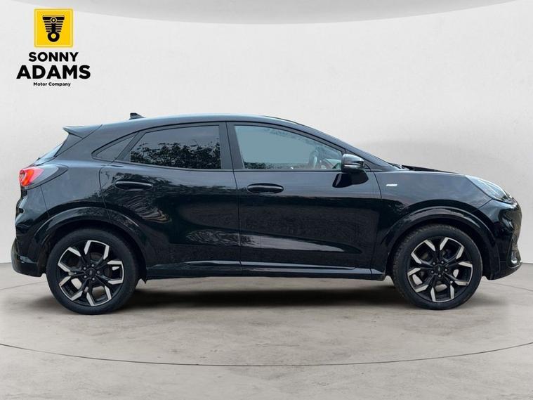 The Ford Puma 1.0T EcoBoost MHEV ST-Line X is a stylish, efficient, and well-equipped hybrid SUV designed to deliver sporty performance with everyday practicality. Powered by Fords award-winning 1.0-litre EcoBoost mild-hybrid engine producing 125 PS, this Euro 6-compliant model offers excellent fuel economy, smooth power delivery, and an engaging manual driving experience. The exterior design is bold and dynamic, featuring 18-inch 5-spoke alloy wheels in a matt black machined finish, an ST-Line body styling kit, and a large body-coloured rear spoiler. Finished in Agate Black, it also includes LED daytime running lights, rear privacy glass, and power-foldable heated mirrors with puddle lamps for a premium touch. The Quickclear heated windscreen and automatic headlights with rain-sensing wipers and auto high beam provide maximum visibility and convenience in all conditions. Inside, the cabin combines sporty elegance with cutting-edge technology. The Partial Premium Sensico upholstery with red stitching, flat-bottomed leather steering wheel, and aluminium gear knob add to the performance feel, while the full digital 12.3-inch instrument cluster and Ford SYNC 3 navigation system with B&O Premium Audio deliver an intuitive and immersive driving experience. The electronic air temperature control (EATC), ambient LED lighting, and front sports seats with lumbar adjustment enhance comfort on every journey. Practicality is built in with Fords innovative MegaBox extended boot space, 60/40 split-folding rear seats, and ample cabin storage throughout. Everyday usability is supported by wireless phone charging, USB connectivity, and front and rear electric windows. Safety and driver assistance features are comprehensive, including lane keeping aid with lane departure warning, cruise control with intelligent speed assist, rear parking sensors, pre-collision assist with autonomous emergency braking, hill start assist, and traction control. Selectable driving modes Normal, Eco, Sport, Slippery, and Trail allow you to tailor the drive to your conditions and preferences. This vehicle benefits from a full service history, ensuring it has been meticulously maintained throughout its life. For added peace of mind, if the MOT is under six months, well ensure a fresh MOT is completed before sale. The vehicle also comes with a standard three-month back-to-base warranty, with the option to extend it to a nationwide warranty for added reassurance. Nationwide delivery is also available. For more details or to arrange a viewing, contact 02030183551 or email enquiries dealer's website