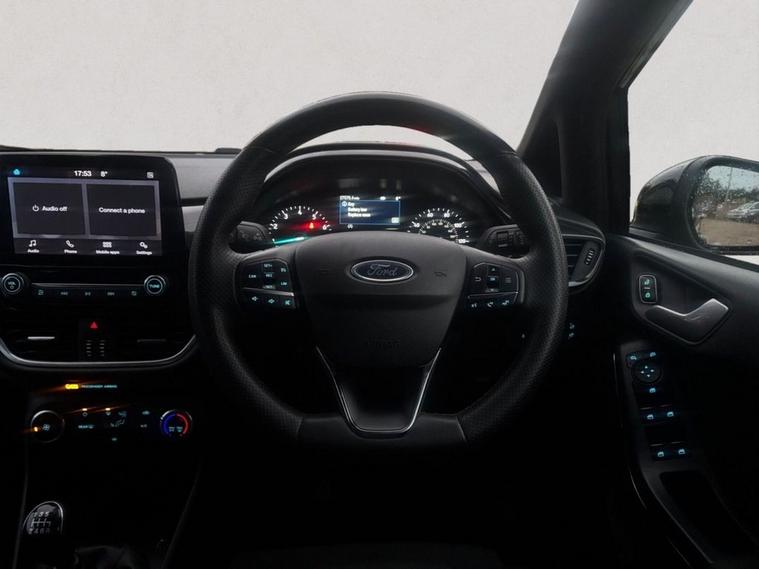 The Ford Fiesta 1.0T EcoBoost ST-Line is a sporty and efficient hatchback that combines performance, technology, and style in one dynamic package. Powered by the award-winning 1.0-litre EcoBoost petrol engine producing 100 PS, this Euro 6-compliant model delivers an enjoyable drive with excellent fuel efficiency. The smooth manual transmission offers full driver engagement, making every journey fun and responsive whether around town or on the open road. The ST-Line trim adds a distinctive sporty edge to the Fiestas design, featuring a unique ST-Line body kit, large body-coloured rear spoiler, and 17-inch 5x2-spoke Rock Metallic alloy wheels. The LED headlights with integrated fog lights, rear privacy glass, chrome exhaust trim, and body-coloured mirrors and handles give it a premium, athletic look. The Agate Black finish enhances its sleek, modern appeal, while the Quickclear heated windscreen ensures excellent visibility in all weather conditions. Inside, the Fiesta ST-Lines cabin combines sportiness with comfort and practicality. The black and red cloth upholstery with red stitching, Sensico-trimmed flat-bottomed steering wheel, and black interior headlining create a refined and sporty atmosphere. A premium centre console with USB connectivity, cupholders, and a 12V power outlet ensures convenience on every trip. The driver benefits from rake and reach steering adjustment, manual air conditioning, and a 4.2-inch TFT trip computer for easy access to key driving information. Technology and safety are at the forefront, with Ford SYNC 2.5 connectivity, cruise control with speed limiter and intelligent speed assistance, and rear parking sensors. The Fiesta is equipped with lane-keeping aid, traffic sign recognition, driver alert, and auto high beam for added confidence on the road. Enhanced electronic stability control, traction control, and hill start assist contribute to a secure and composed drive. The Emergency Brake Assist (EBA) and Automatic Flashing Brake Lights provide extra reassurance in sudden braking situations. Practical touches include 60/40 split-folding rear seats, rear electric windows, rear centre headrest, and ample storage compartments. The Ford Easy-Fuel capless refuelling system and keyless start add further convenience, while Thatcham Category alarm with power door deadlocks and MyKey functionality offer peace of mind and security. This vehicle benefits from a full service history, ensuring it has been meticulously maintained throughout its life. For added peace of mind, if the MOT is under six months, well ensure a fresh MOT is completed before sale. The vehicle also comes with a standard three-month back-to-base warranty, with the option to extend it to a nationwide warranty for added reassurance. Nationwide delivery is also available. For more details or to arrange a viewing, contact 02030183551 or email enquiries dealer's website