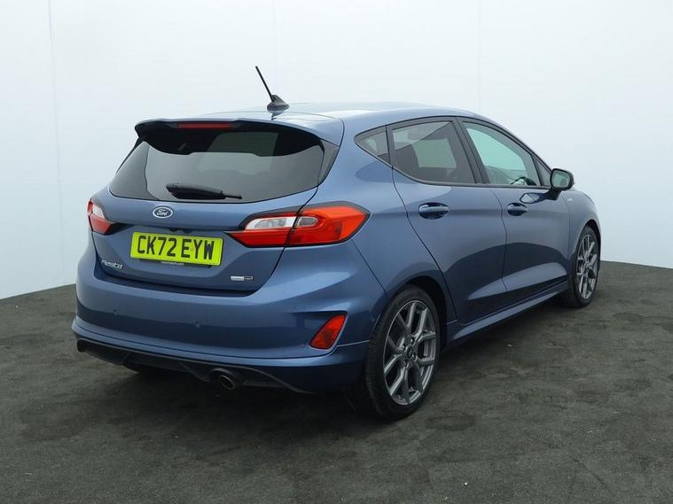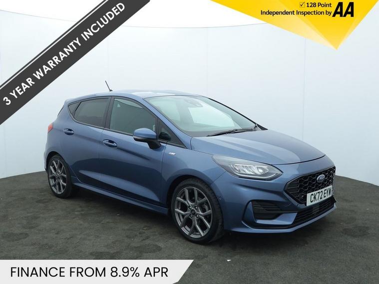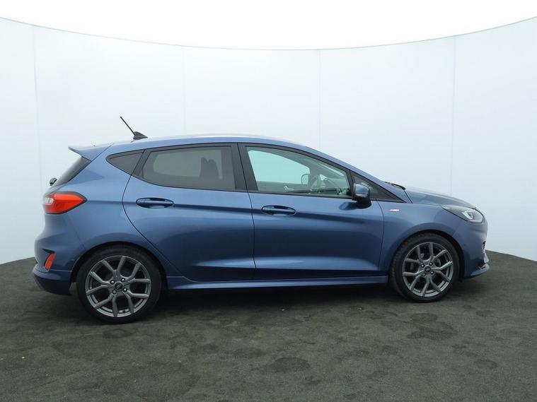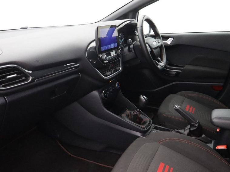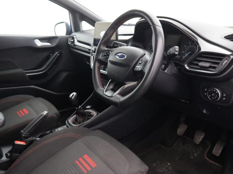 This 2022 Ford Fiesta ST Line Edition boasts a clear vehicle history and has had only one owner, offering peace of mind for its next driver. This stylish hatchback features a responsive 1.0L petrol engine, meeting Euro 6 emissions standards. For convenience, it includes rear parking distance sensors, manual air conditioning, and automatic LED projector headlights with daytime running lights. Navigating your journeys is made easy with the Ford Navigation System, complete with Ford SYNC 3, Apple CarPlay, and Android Auto integration, all supported by FordPass Connect. Experience impressive efficiency with this Fiesta, achieving a highlight fuel economy of 58 mpg and low CO2 emissions, making it an economical choice. Its performance is also noteworthy, with an acceleration of 0 to 60 mph in just 9.4 seconds, indicating a more engaging driving experience compared to many similar vehicles. The MOT remains long, further enhancing its appeal as a well maintained and ready to go option.