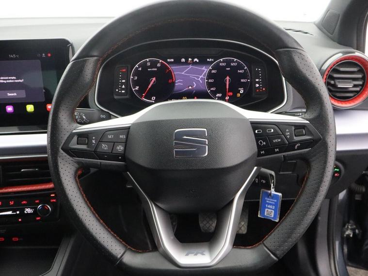 This 2023 SEAT Ibiza TSI FR Sport is a superb example, boasting a clear vehicle history and having had only one owner from new. This stylish hatchback features a responsive 1.0 litre petrol engine, meeting Euro 6 emission standards. Inside, youll find the convenience of Dual Zone Climate Control and the advanced Full Link Smartphone Integration, compatible with both Android Auto and Apple CarPlay. The FR Sport trim also includes a Safety and Driving Pack with rear parking sensors, and Full LED Automatic Headlights for enhanced visibility. Enjoy seamless connectivity with Bluetooth Audio Streaming and a Handsfree System, all housed within a spacious boot perfect for your needs. The SEAT Ibiza TSI FR Sport offers an engaging driving experience, accelerating from 0 to 60mph in just 10.3 seconds. Its low CO2 emissions make it an economical choice, indicating it is more efficient than many similar vehicles on the road. This combination of performance, efficiency, and modern features makes this 2023 Ibiza a compelling option for those seeking a well maintained and feature rich compact car.