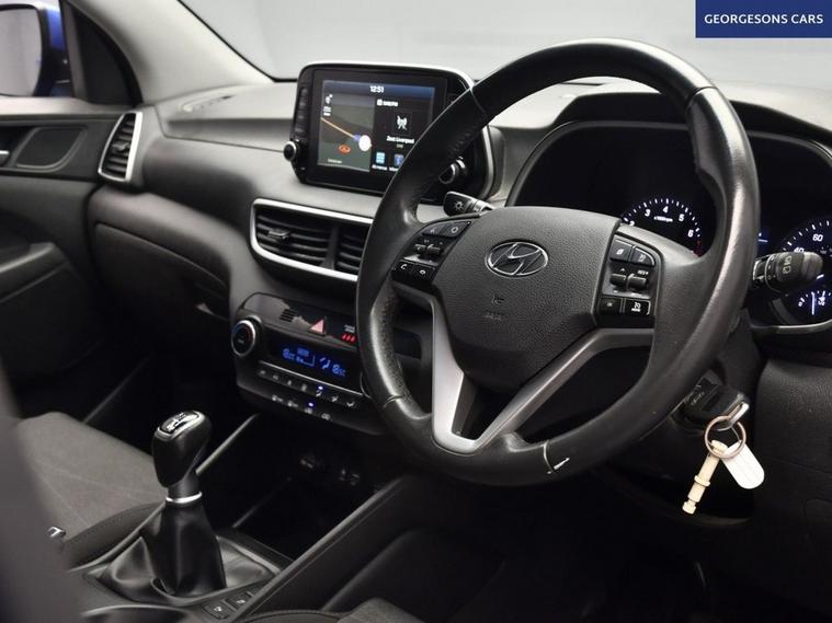 The Hyundai Tucson 1.6 GDi SE Nav combines a responsive 1.6-litre petrol engine with 132hp, delivering 0-62mph in 11.5 seconds and up to 44.1mpg in this front-wheel-drive setup with a precise 6-speed manual transmission. The SE Nav trim offers practical style with 17-inch alloy wheels and a spacious interior for versatile family motoring. With six services, this Tucson is in excellent condition. Navigate effortlessly with integrated satellite navigation, Apple CarPlay, Bluetooth, and DAB radio, ensuring seamless connectivity on every journey. Parking is a breeze thanks to the reverse camera, providing clear visibility and confidence in tight spaces. Stay comfortable with dual-zone climate control, offering personalized cooling year-round. Cruise control with speed limiter enhances relaxation on highways. The spacious five-door SUV design includes a 620-litre boot for outstanding practicality.