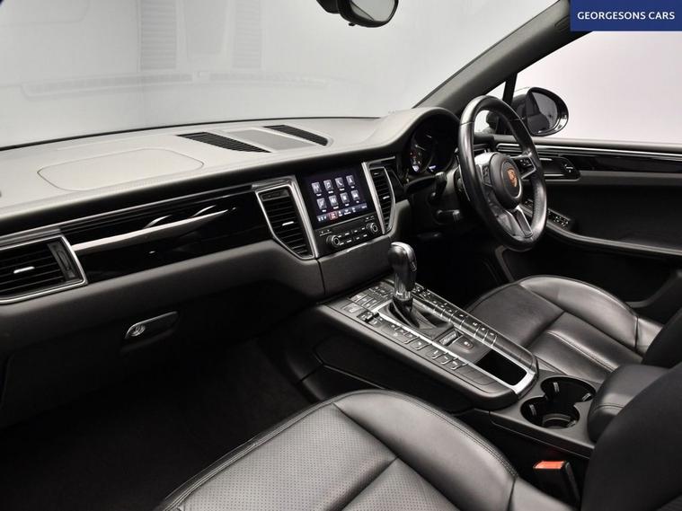 The Porsche Macan 3.0 V6 S combines a supercharged 3.0-litre V6 petrol engine with 354hp, delivering 0-62mph in 5.3 seconds and up to 31.7mpg in this all-wheel-drive setup with a lightning-fast 7-speed PDK automatic transmission. The S trim offers dynamic performance with aggressive styling and a driver-focused cockpit for premium compact SUV motoring. With five services, including four at Porsche main agents, this Macan is in exceptional condition. Enjoy the expansive panoramic roof for an open-air feel, while integrated satellite navigation, Apple CarPlay, Bluetooth, and DAB radio ensure seamless connectivity. Parking is a breeze thanks to the reverse camera and parking sensors. Stay comfortable with dual-zone climate control and electric heated seats. Cruise control with speed limiter, lane assist, hill assist, and blind spot assist enhance safety and ease on every journey. Selectable drive modes deliver tailored performancewhether for efficiency, sportiness, or off-road capability. The spacious five-door SUV design includes a 500-litre boot (expandable to 1, 500 litres).