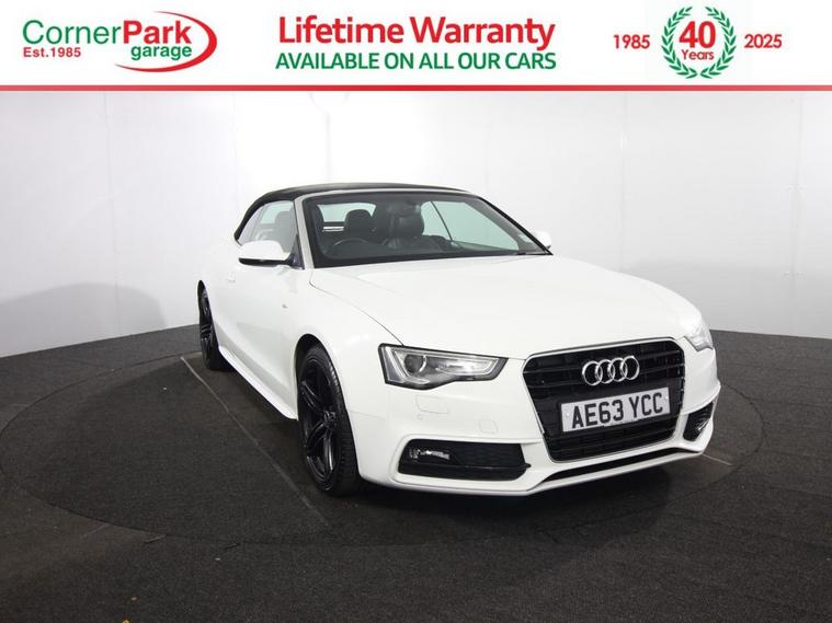 Full service history with 7 services. Last serviced at 95, 794 miles in August 2025. Introducing the 2013 Audi A5 Cabriolet 2.0 TFSI S line Special Edition, a stylish and spirited 2-door petrol convertible that brings together sporty performance and premium comfort. Finished with 19-inch 5-segment-spoke alloy wheels, high-gloss black radiator grille, and S line exterior styling package, this Euro 6 manual model features a fully automatic acoustic hood, bi-xenon plus headlights with adaptive LED daytime running lights, and matt brushed aluminium inlays for a striking and sophisticated look. Powered by a lively 2.0-litre TFSI petrol engine producing 225ps with start-stop technology, the A5 Cabriolet delivers engaging driving dynamics supported by sport suspension and electronic stability programme (ESP). The cabin is packed with luxury and convenience: enjoy electronic 3-zone climate control, heated front sports seats with electric lumbar support, head level heating, and leather-trimmed armrests. Stay connected with a 6.5-inch Colour DIS display, Bang & Olufsen sound system with 10 speakers, DAB digital radio, Audi Music Interface, Bluetooth mobile preparation, and comprehensive parking system plus with sensors front and rear. Safety and practicality are enhanced by front and rear ISOFIX child seat preparation, split folding rear seats, a space saver spare wheel, wind deflector, intelligent key access, and electronic parking brake. The interior is finished with illuminated S line door sills, multi-function leather steering wheel, auto-dimming rear-view mirror, automatic wipers with rain sensor, and cruise control for effortless long-distance journeys. The 2013 Audi A5 Cabriolet S line Special Edition combines open-top driving pleasure, luxury features, and advanced technology in a truly desirable sports convertible.