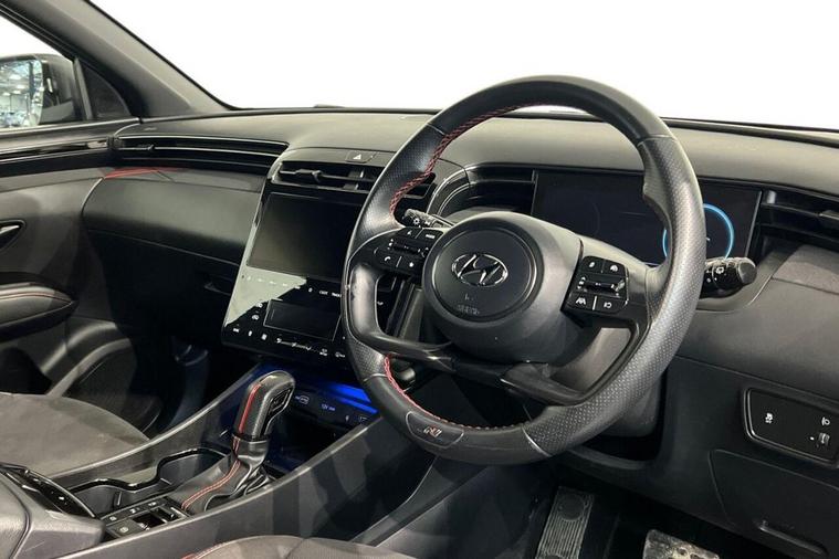 This 2022 Hyundai TUCSON T-GDi N Line is a superb example, having had only one owner since new. It boasts a 1.6 litre petrol hybrid engine, meeting Euro 6 emissions standards, and comes with an MOT valid until September 2026, offering peace of mind for the road ahead. Inside, youll find comfort and convenience with dual zone climate control and heated front seats, while Bluetooth connectivity and Android Auto ensure seamless integration with your phone. The full LED headlights provide excellent visibility. The TUCSON N Line is designed for practicality and enjoyment, featuring a generous boot space that makes it ideal for families or those who need extra room. Its low insurance group rating also sets it apart from many similar vehicles, potentially saving you money on running costs. This combination of a well maintained, single owner vehicle with desirable features and cost saving benefits makes it a compelling choice.