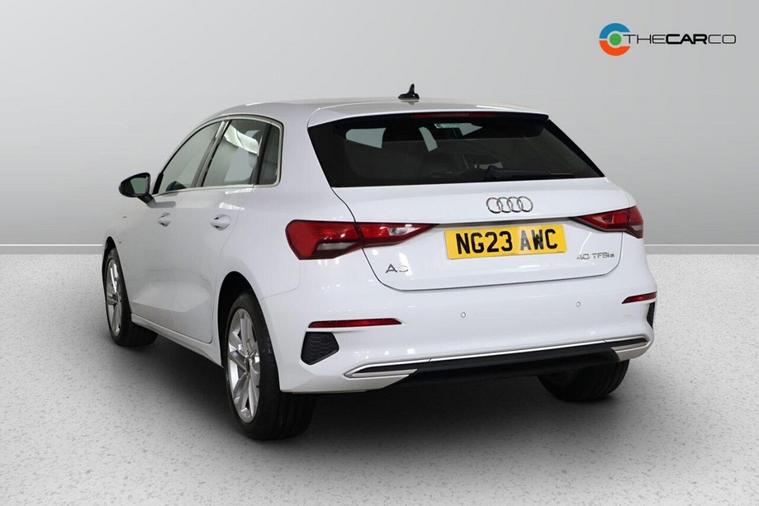 This 2023 Audi A3 TFSIe Sport is a superb example, boasting exceptionally low mileage for its age and having had only one owner. This Euro 6 compliant model features a 1.4 litre petrol plug in hybrid engine, offering an efficient and modern driving experience. It comes equipped with a host of desirable features, including LED headlights with LED daytime running lights, a light and rain sensor for automatic light activation, and the Audi Smartphone Interface which seamlessly integrates your Apple CarPlay. The Sport trim level ensures a refined interior, enhanced by dual zone electronic climate control for personalised comfort. Connectivity is made simple with the integrated Bluetooth interface, allowing for easy hands free calls and audio streaming. These notable features, combined with its single owner provenance and minimal mileage of just 22, 618 miles, position this Audi A3 TFSIe Sport as a standout choice compared to other vehicles of its kind.