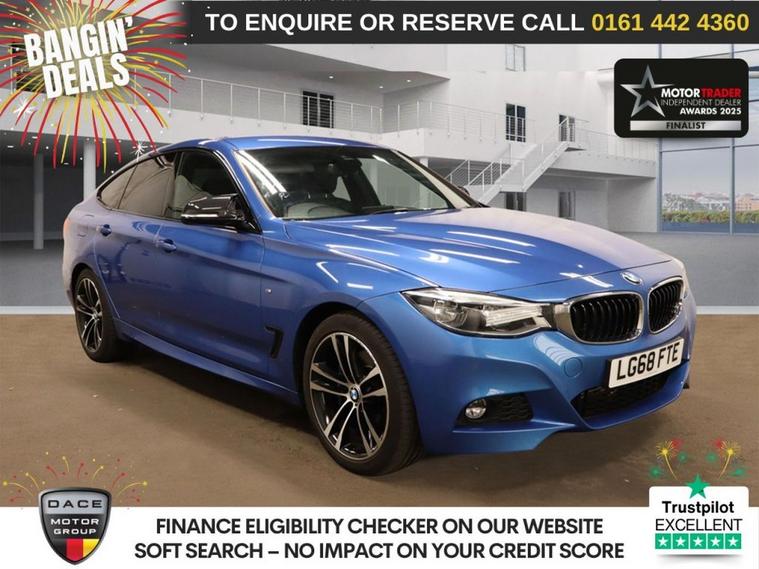THIS AUTOMATIC BMW 3 SERIES GRAN TURISMO 320d M SPORT IS FINISHED IN A STUNNING ESTORIL BLUE AND HAS FULL BLACK LEATHER INTERIOR. IT COMES WITH SERVICE HISTORY, HEATED FRONT SEATS, PRO NAVIGATION, HARMON KARDON SPEAKERS, 19 INCH ALLOYS, SPORT AUTOMATIC GEARBOX, ADAPTIVE LED HEADLIGHTS, PRIVACY GLASS, REAR PARKING SENSORS, IN CAR ENTERTAINMENT, MULTI FUNCTION STEERING WHEEL, DUAL CLIMATE CONTROL, AIR CONDITIONING, ELECTRIC WINDOWS, ELECTRIC DOOR MIRRORS, RAIN SENSING WIPERS. F I N A N C E A V A I L A B L E - *** NOT SURE YOURE ELIGIBLE FOR CAR FINANCE? *** CHECK TODAY USING OUR FREE CAR FINANCE CHECKER ON OUR WEBSITE.*** Dace Motor Group have a dedicated team of finance experts waiting to help with your enquiry. Over the past 30 years we have forged relationships with the countrys largest and best finance houses. We are specialists in Hire Purchase (HP), Personal Contract Purchase (PCP) as well as assisting those with poor credit or previous credit problems - A B O U T U S - At Dace German Car Centre, we are very proud to have been named the first Trading Standards Approved Car Retailer, with process and procedures developed with and applauded by them. We do recommend that customers RESERVE their choice of vehicle prior to making their trip, to avoid potentially missing the car. Visit our website https:/ dealer's website At Dace German Car Centre Stockport we carry over 700 cars in group stock TO ENQUIRE OR RESERVE PLEASE CALL | 01616232259 W A R R A N T Y A V A I L A B L E - With effect from the 1st May 2024 the Warranty Solutions Group will be providing their highest level of national warranty cover on all of our cars + 3 MONTHS WARRANTY FREE + EXTENDED WARRANTIES AVAILABLE - A D V E R T A C C U R A C Y - Although we make effort to ensure the description of our vehicles is accurate, mistakes can happen. We are human after all! So, whether it is the exact specification of a vehicle you need clarifying, the service history dates and mileages, even the colour shade please speak to a member of our sales team and they will happily confirm all you need to know about this car. PLEASE NOTE our adverts can never be cited as the reason you have brought a car incorrectly, as no purchase can be completed without the customer physically examining the car. As such, the physical viewing and documentation provided for the vehicle is deemed to be the basis for the sale, not an advertisement that may on occasion contain an error. -